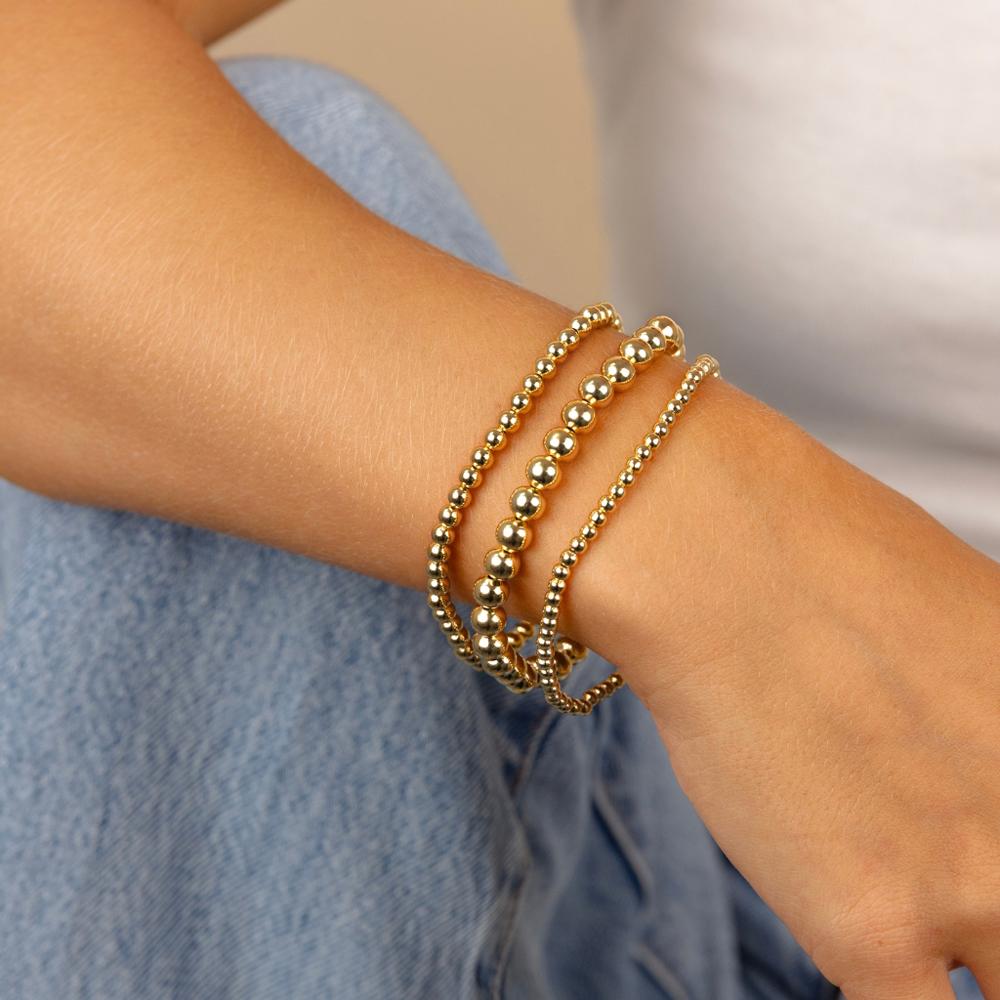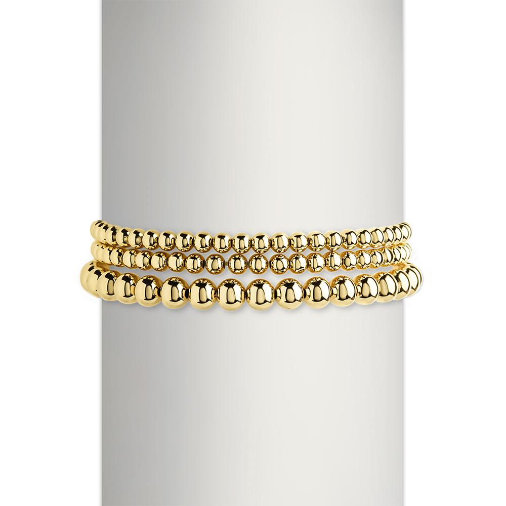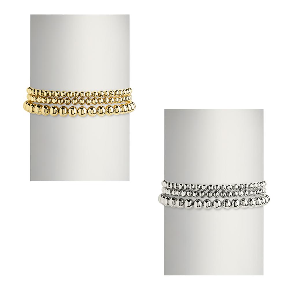 Whether you want to choose a single stretch bracelet or stack and layer a few of different sizes, this set is right for you! Choose from the gold, silver, and rose gold tones.