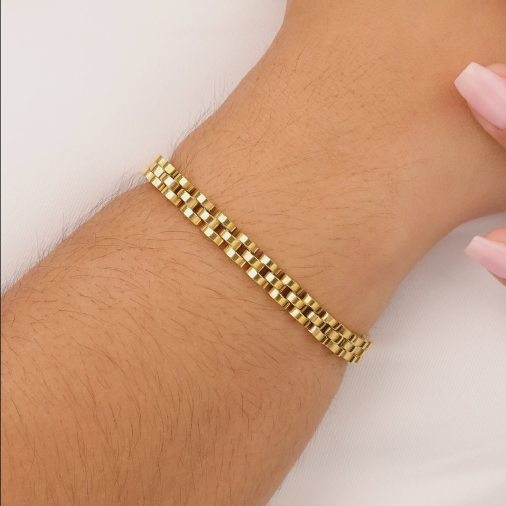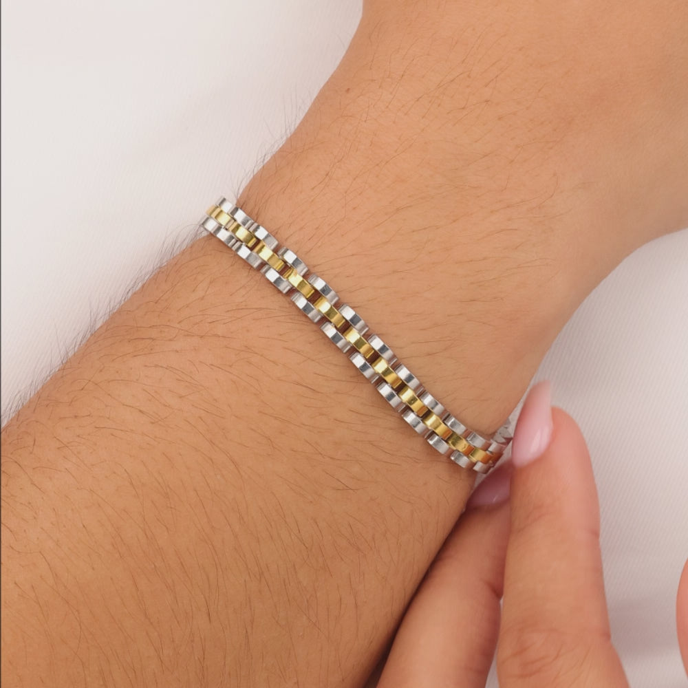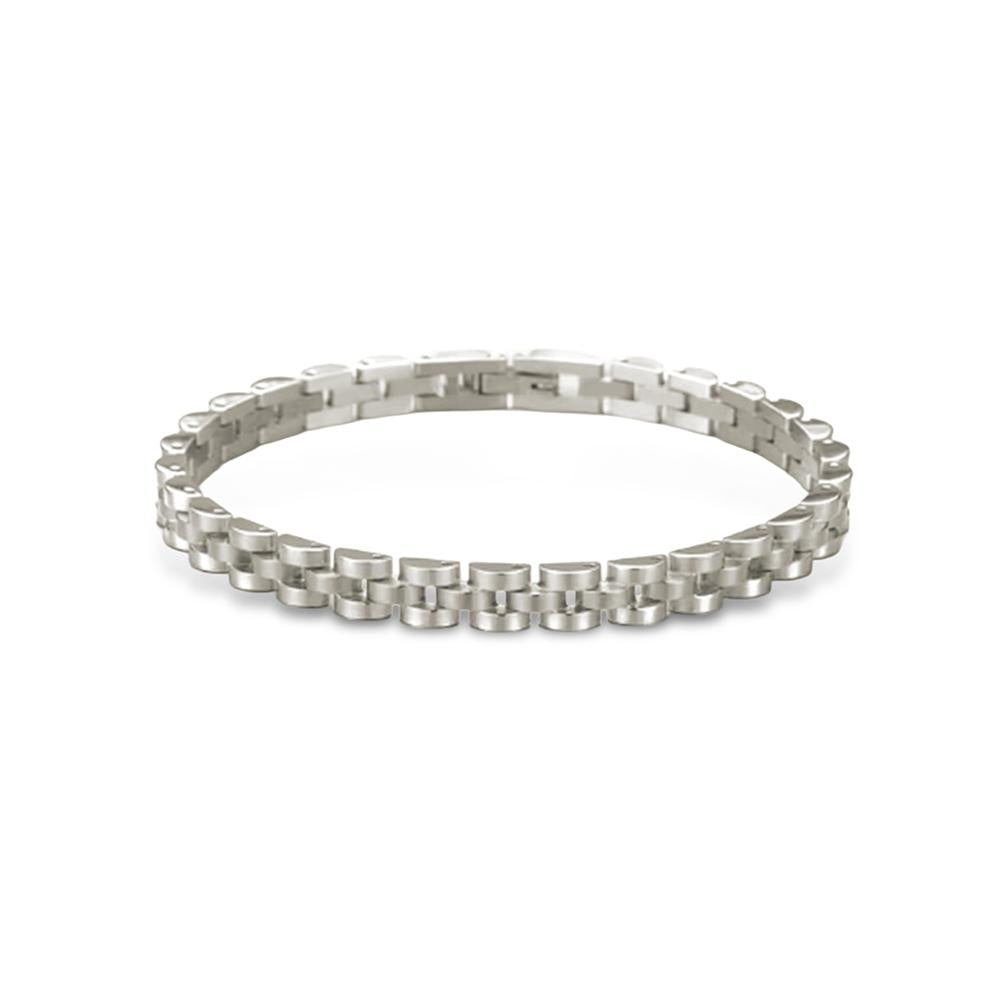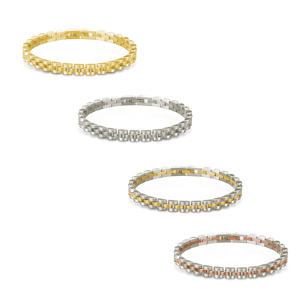 Bold by design. This structured bracelet brings all the edge—clean lines, crisp detail, and a stacked look that stands on its own (but layers like a pro).