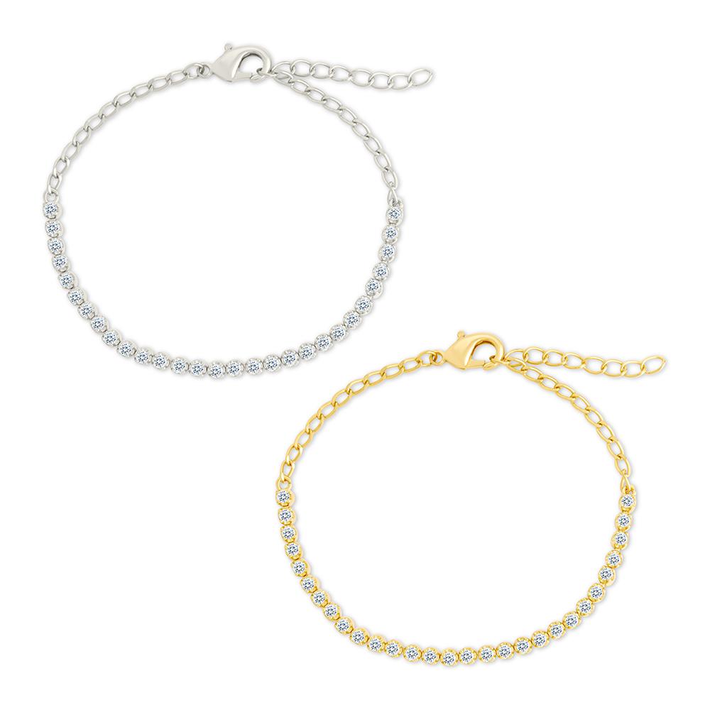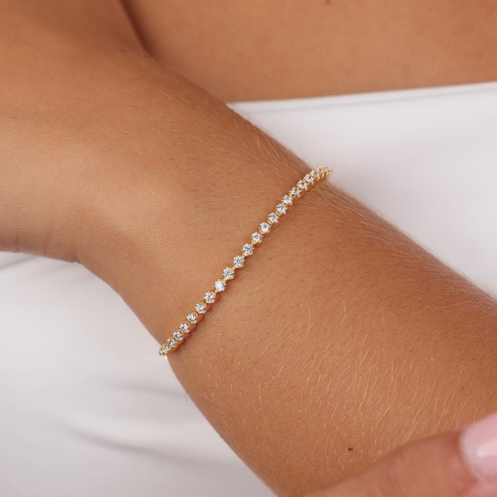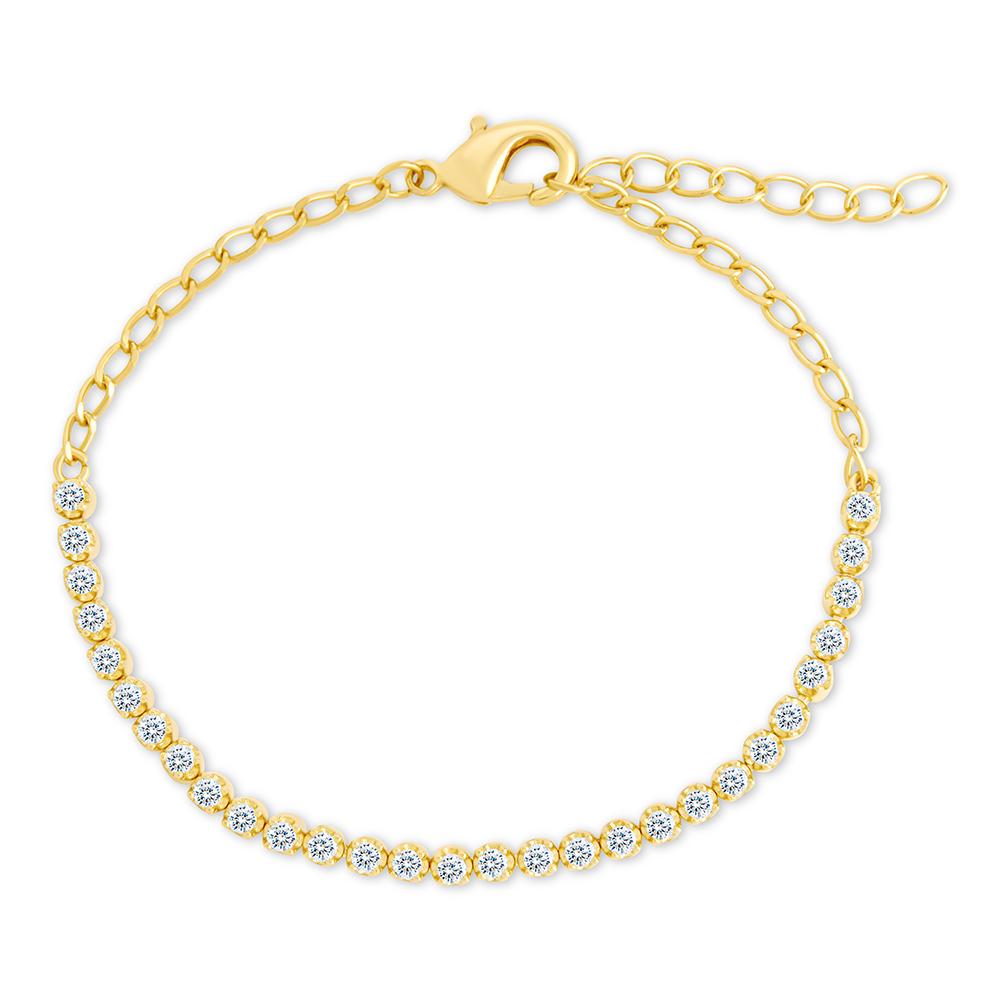 The Lavinia Bracelet keeps things simple, but never plain. A continuous row of brilliant-cut hearts and arrows CZ stones sits along a delicate gold-plated chain, catching light with every flick of the wrist.