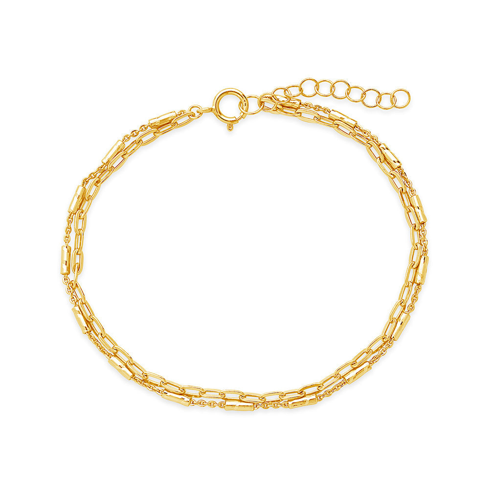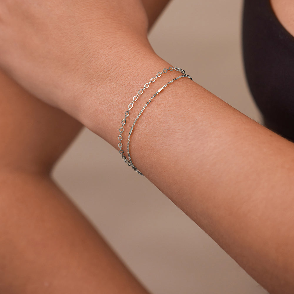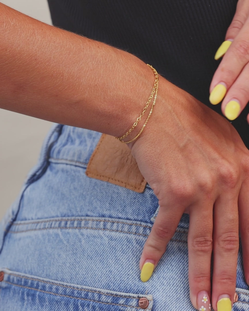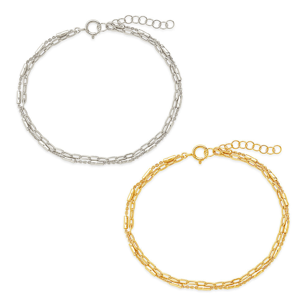 Add some delicate gold or silver details to your favorite look! This 2-layer bracelet is made of two sets of dainty links and can be adjusted to fit your wrist perfectly. Perfect for stacking, mixing, and matching!