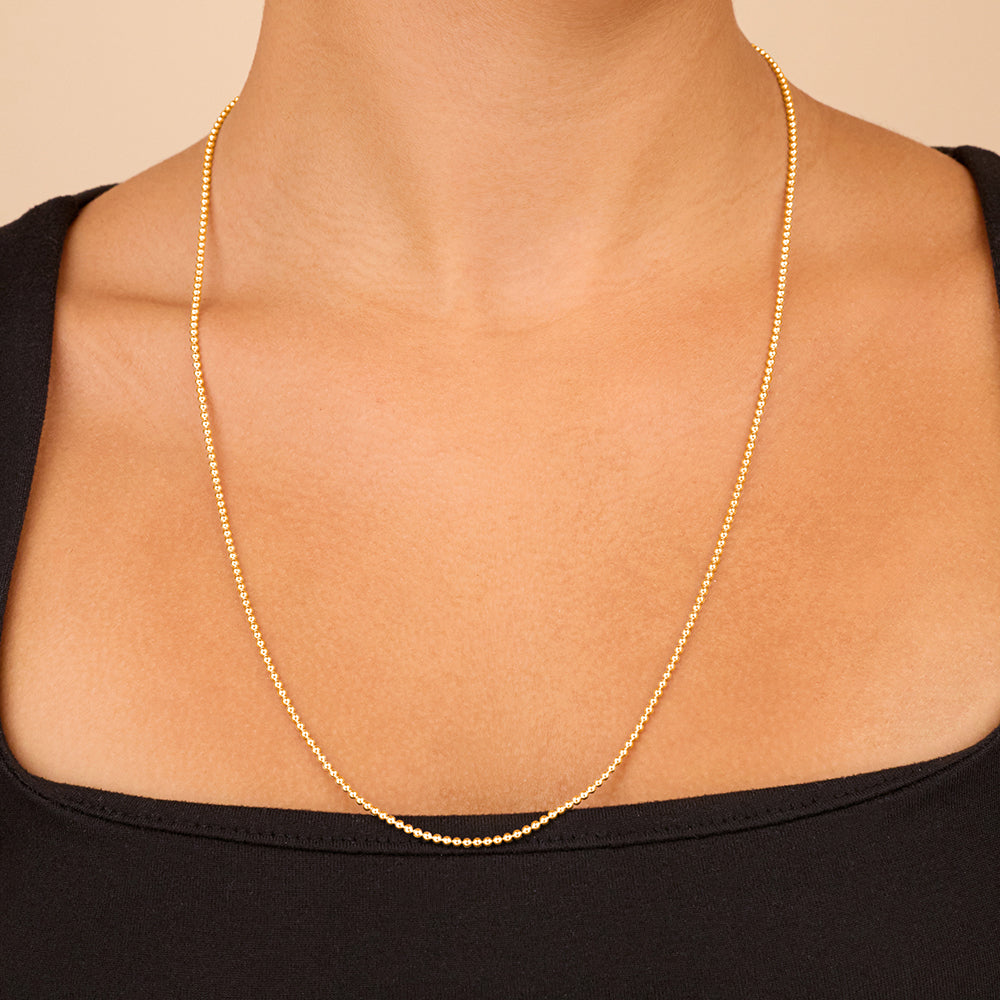 A subtle nod to '90s minimalism. This polished beaded chain adds quiet texture to your neckline, perfect for layering or wearing solo with an open collar. Think understated, but far from forgettable.