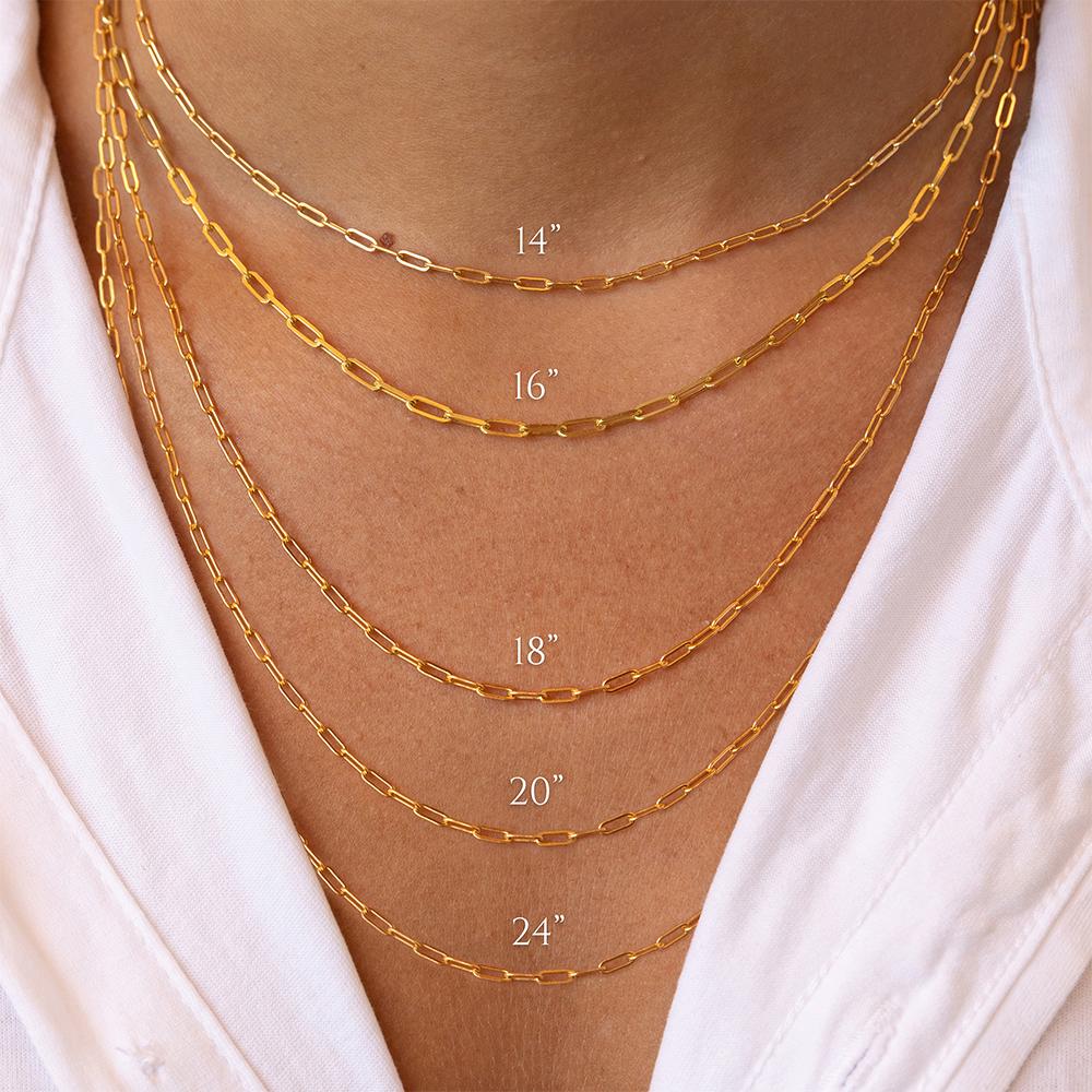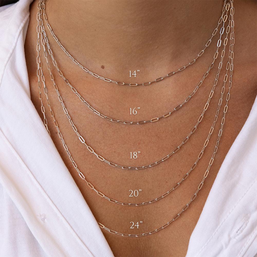 This Sterling Silver Paperclip Chain Necklace is the kind of piece you’ll wear every day. Its sleek links—available in dainty or bold styles—make it easy to style. Wear it solo for a simple look or layer it up with your favorite chains and pendants. Available in 14", 16", 18", 20", or 24", so you can find the perfect fit for any stack.