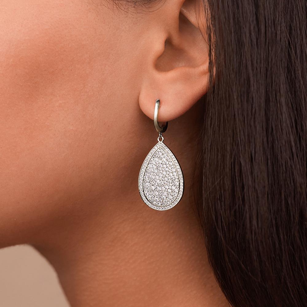 Teardrop hoops, leveled up. Fully covered in clear pavé CZs, these drops are all about impact without trying too hard. Dress them up, keep them casual—either way, they’re the main character.