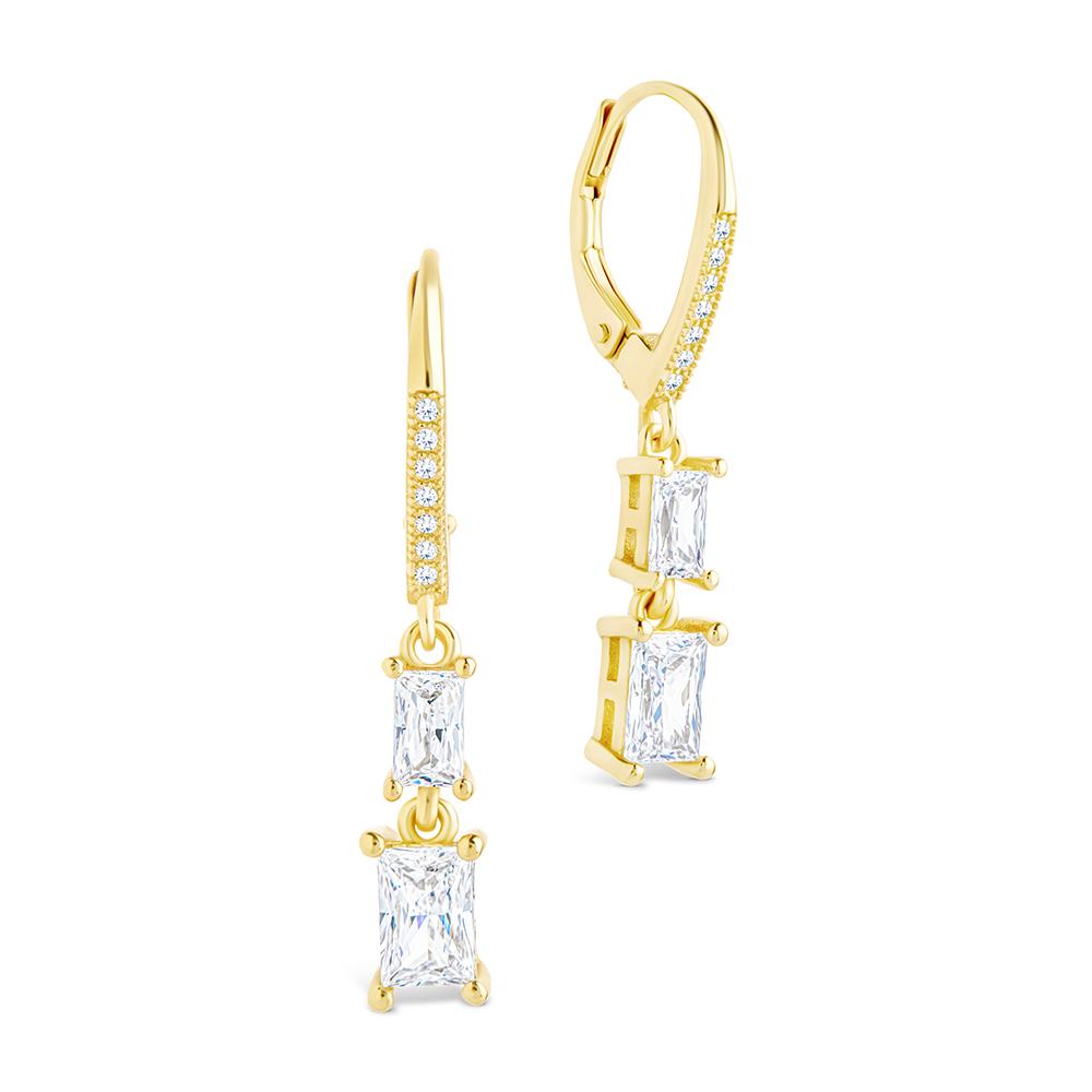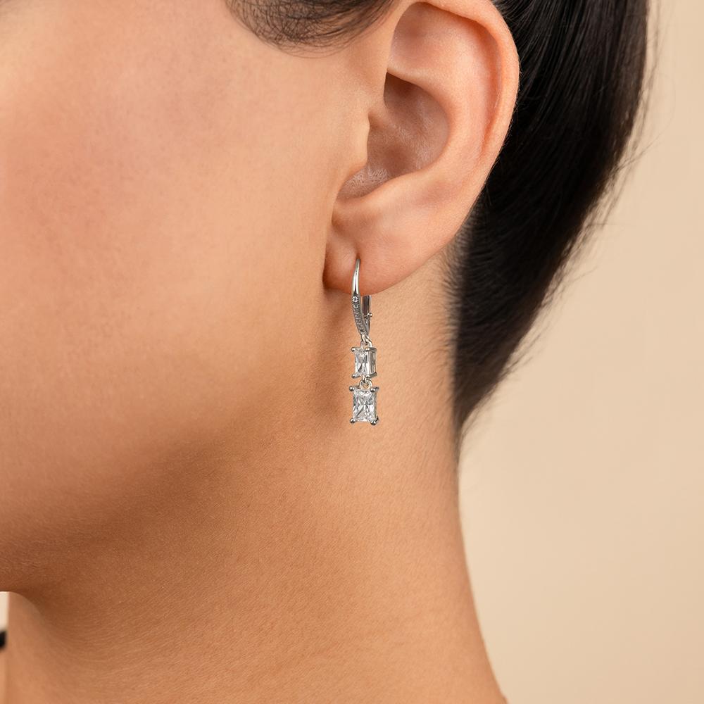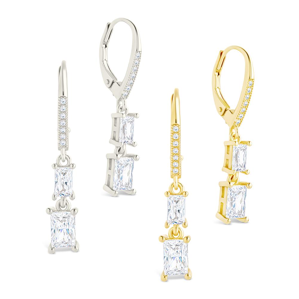 Double the detail. These sterling silver French clip earrings feature two emerald-cut Hearts & Arrows CZs, stacked for a clean, linear drop. Finished with a secure clip closure so they stay put all day.