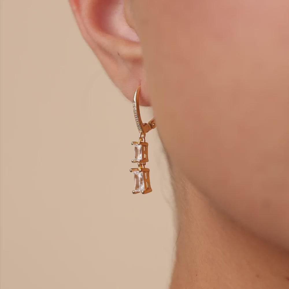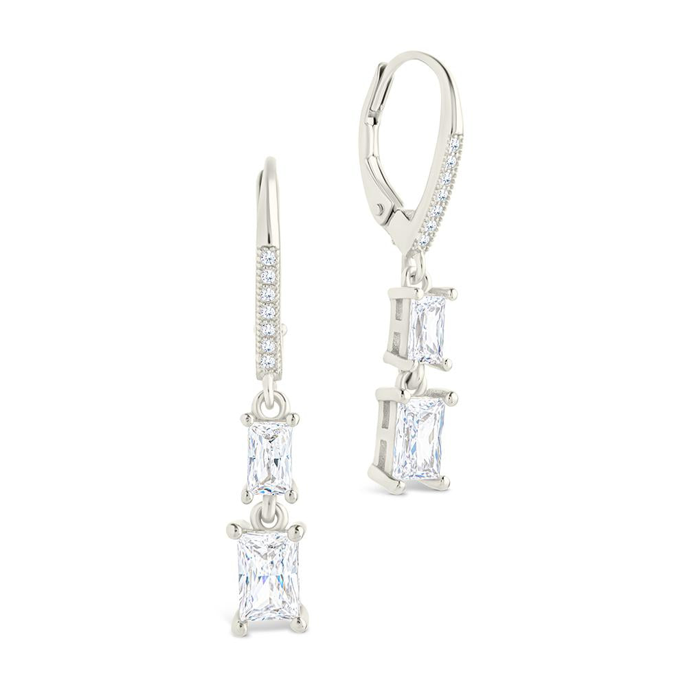 Sterling Silver Double Emerald Cut CZ French Clip Earrings