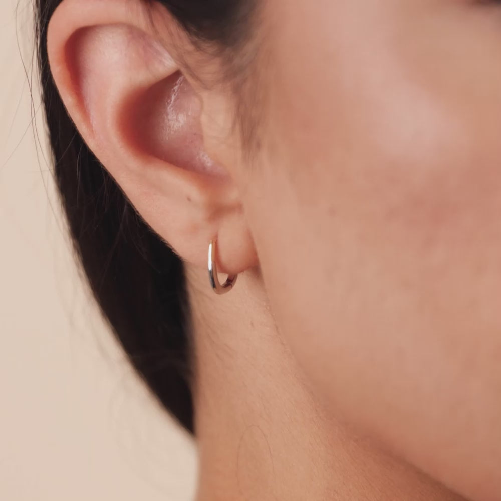 Streamlined and sculptural. These two-tone micro hoops blend gold and rhodium in a smooth, chunky silhouette—your new go-to for stacking or solo wear.