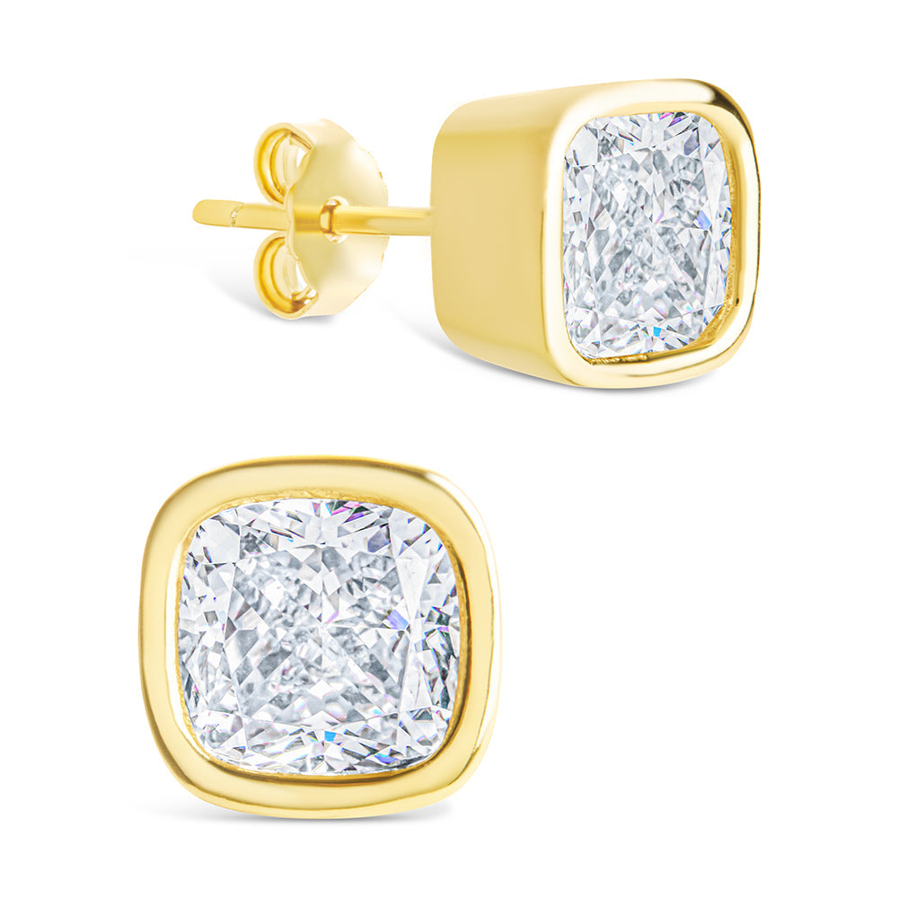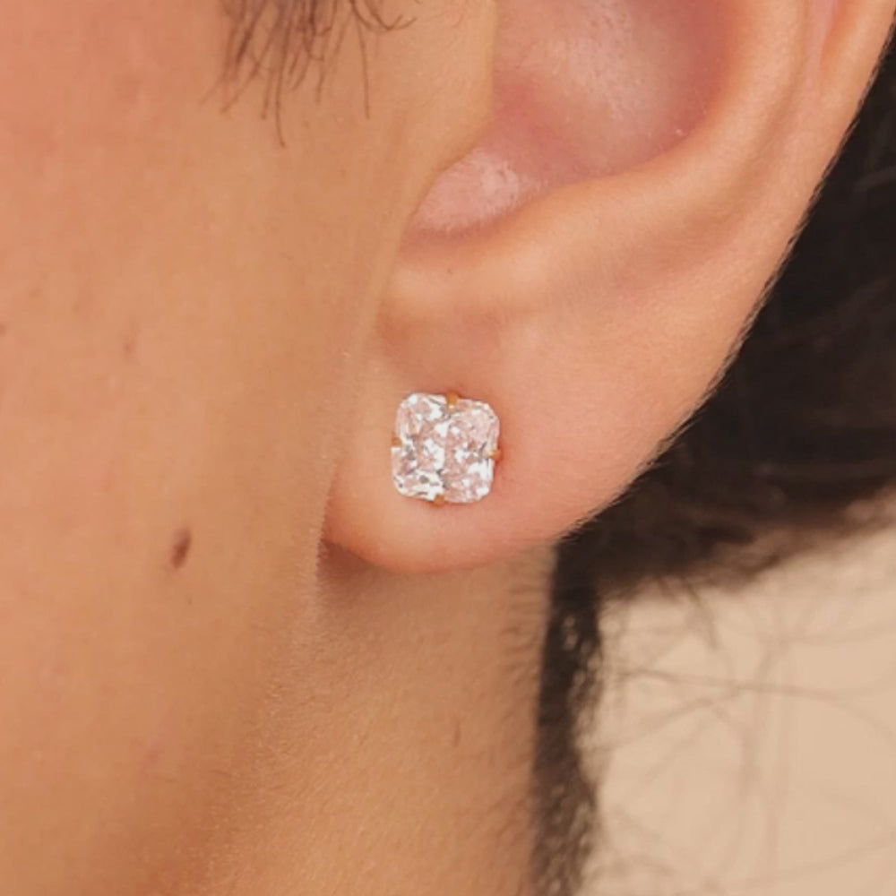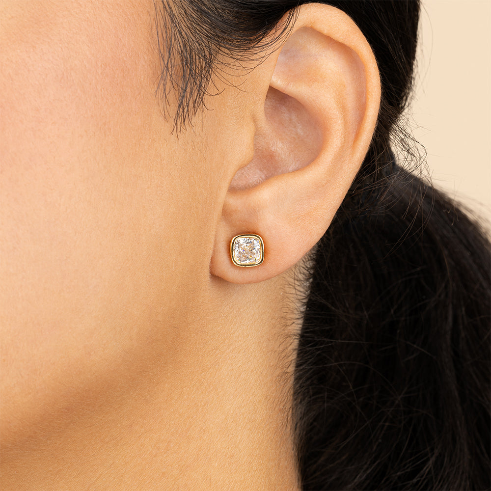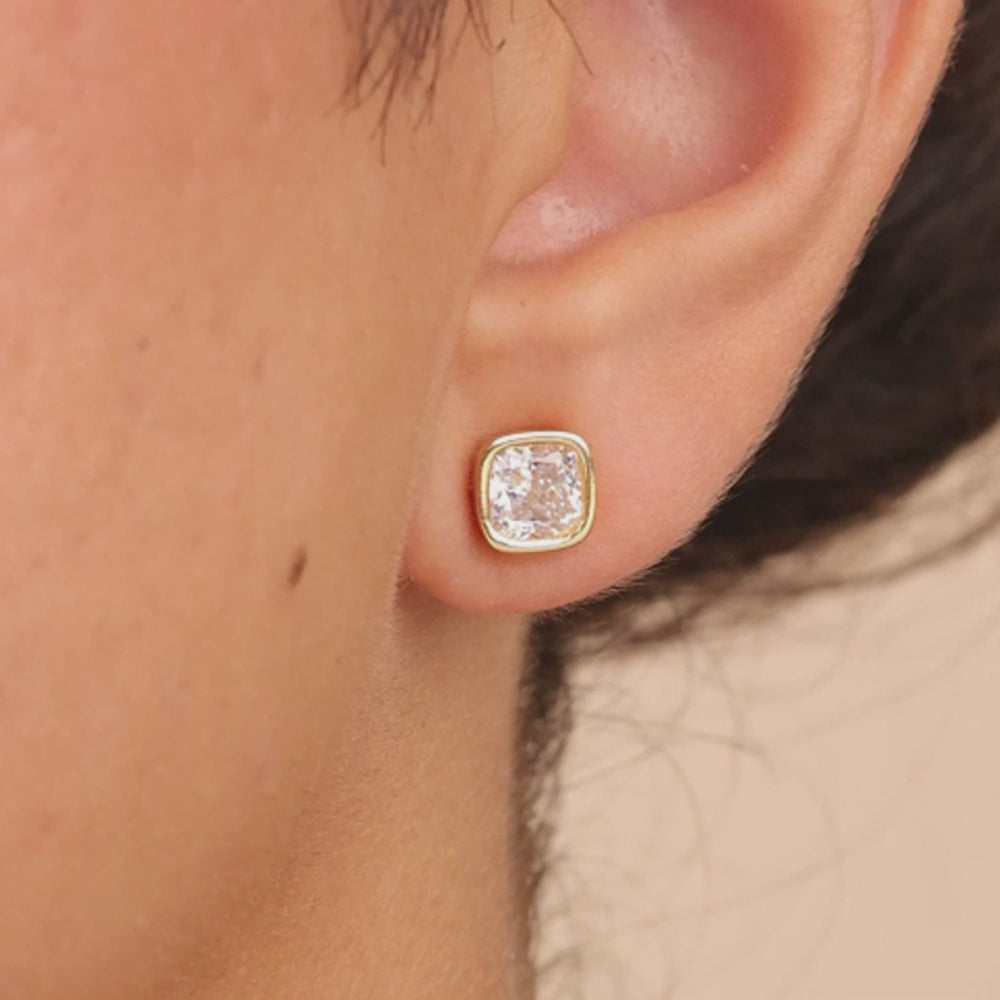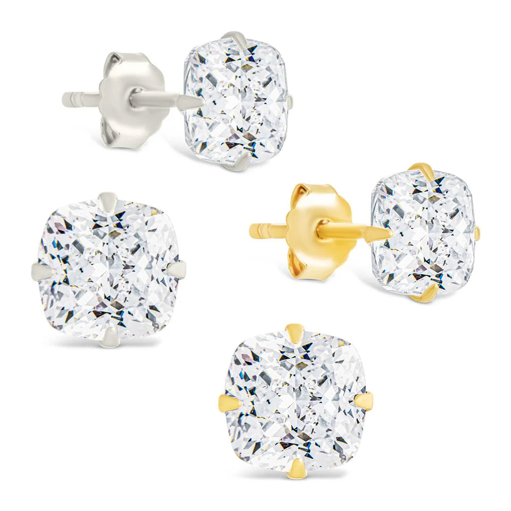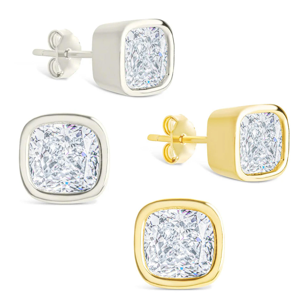These sterling silver studs are anything but basic. Featuring Hearts & Arrows Cushion cut stones for insane brilliance, they catch the light from every angle. Set in sleek non-tarnishing sterling silver, they’re the perfect mix of classic and modern.