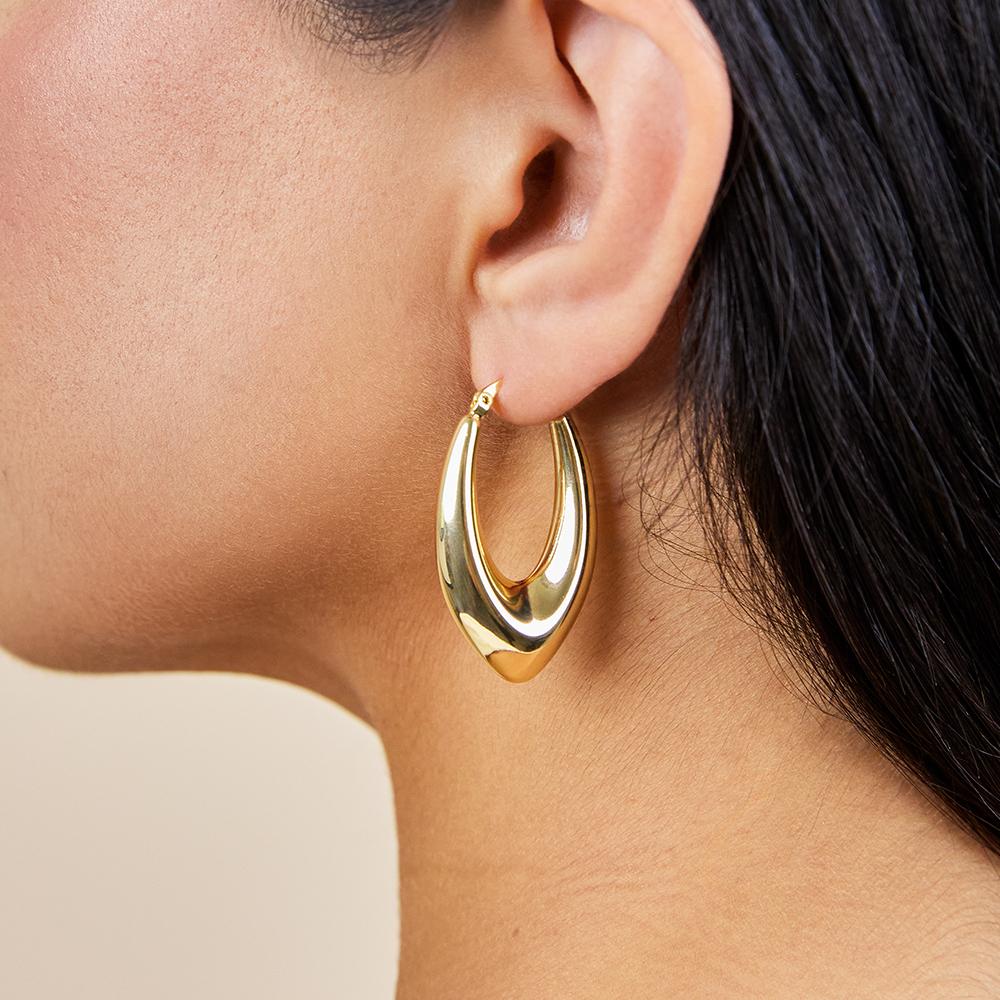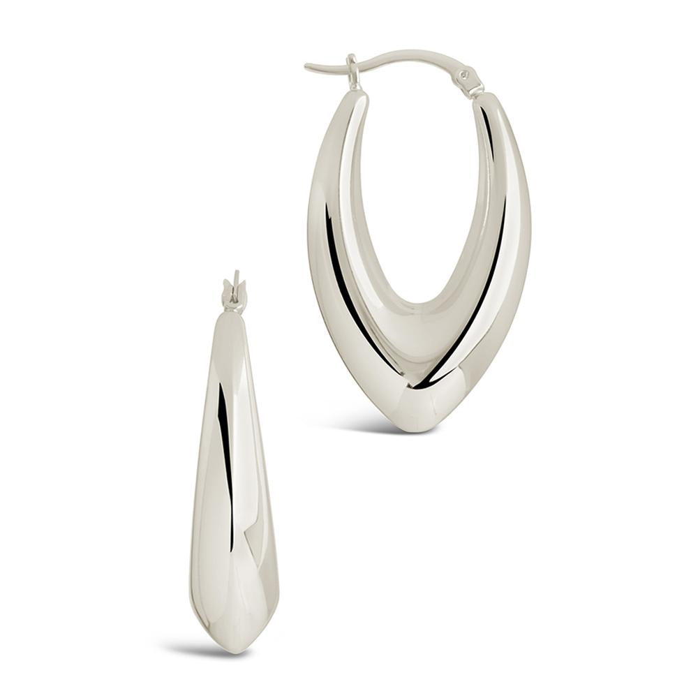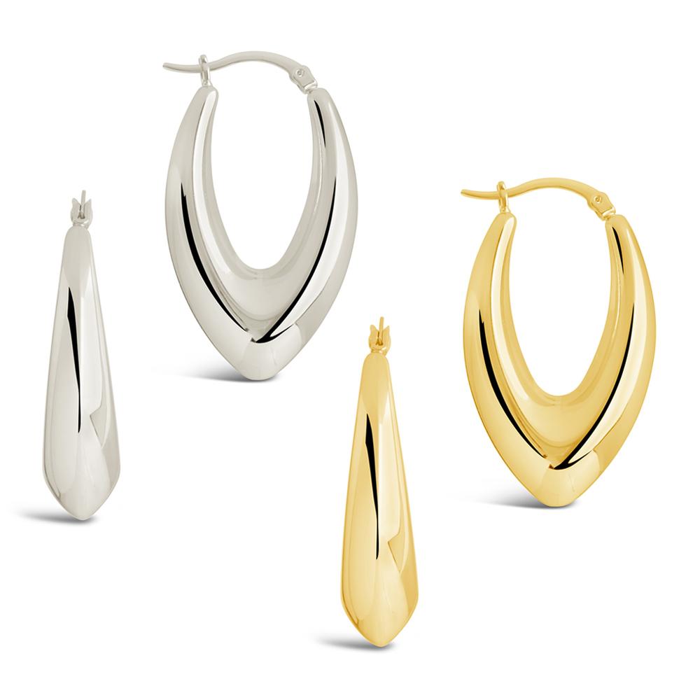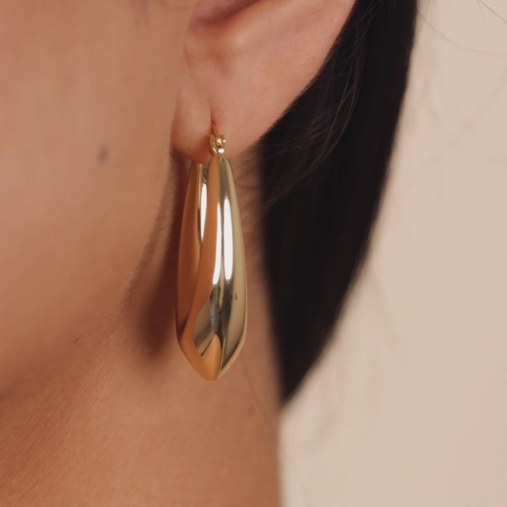 These tapered V drop hoops bring a refined edge with their sleek, fluid shape and bold silhouette. Elevated enough for night, pared-back enough for day—they’re designed to do both.