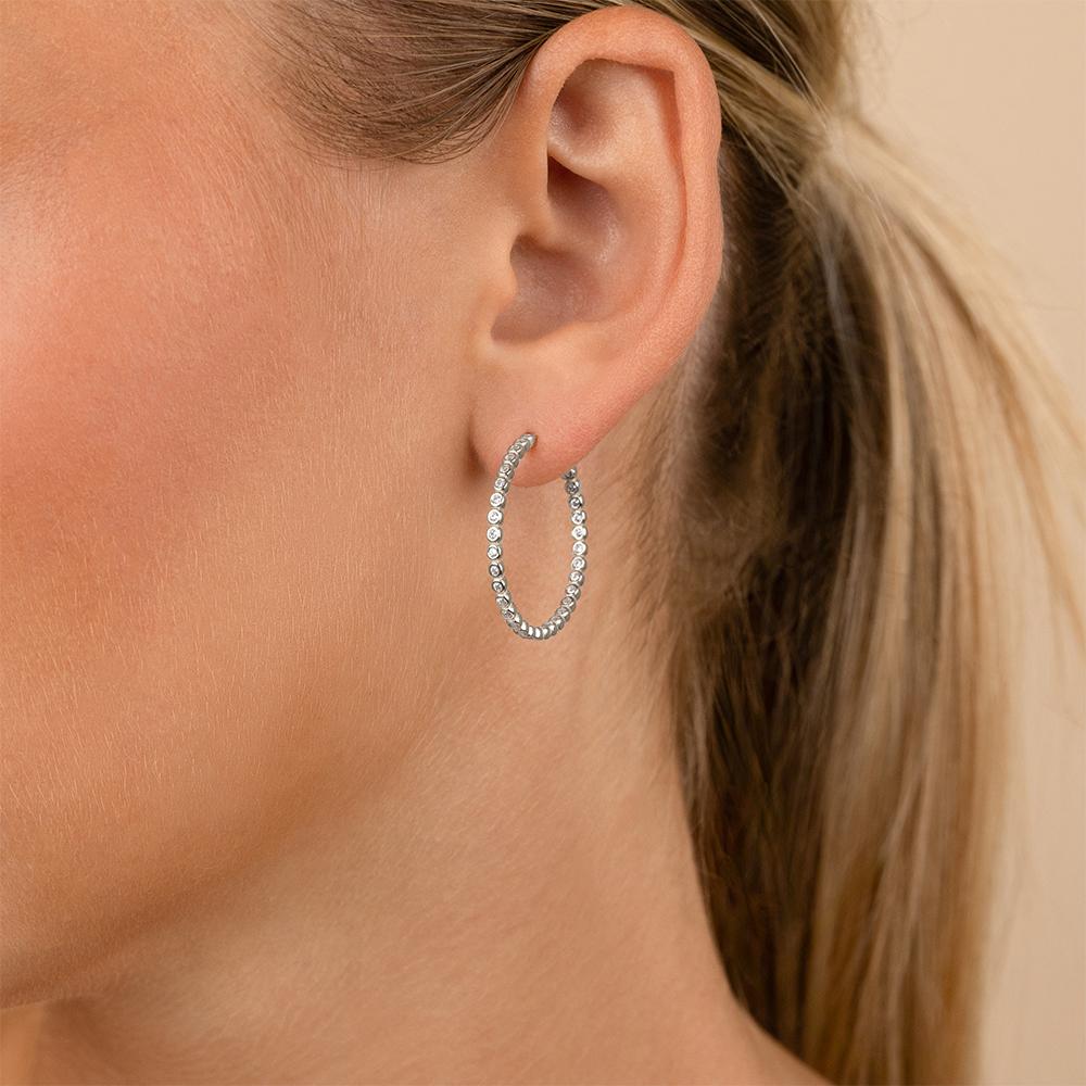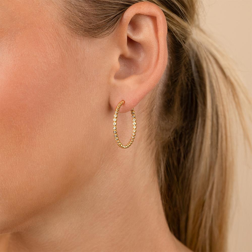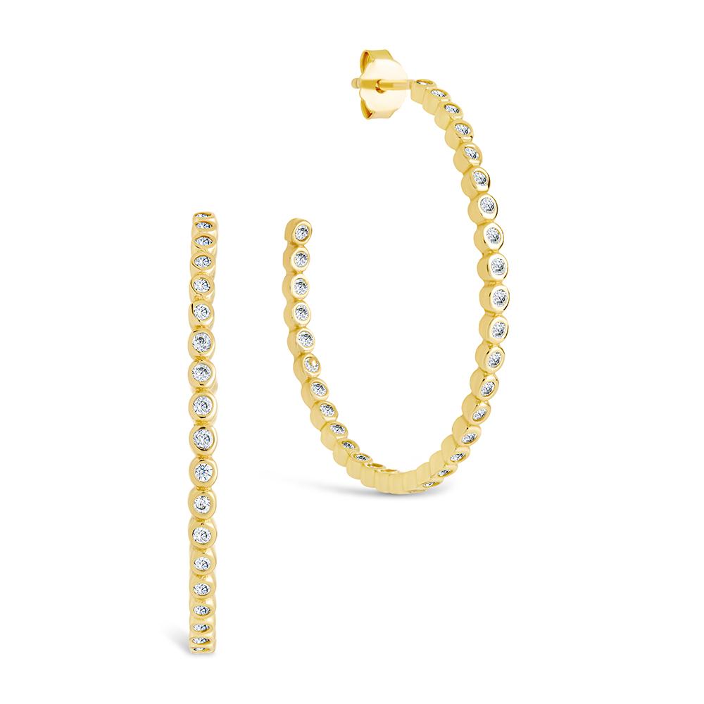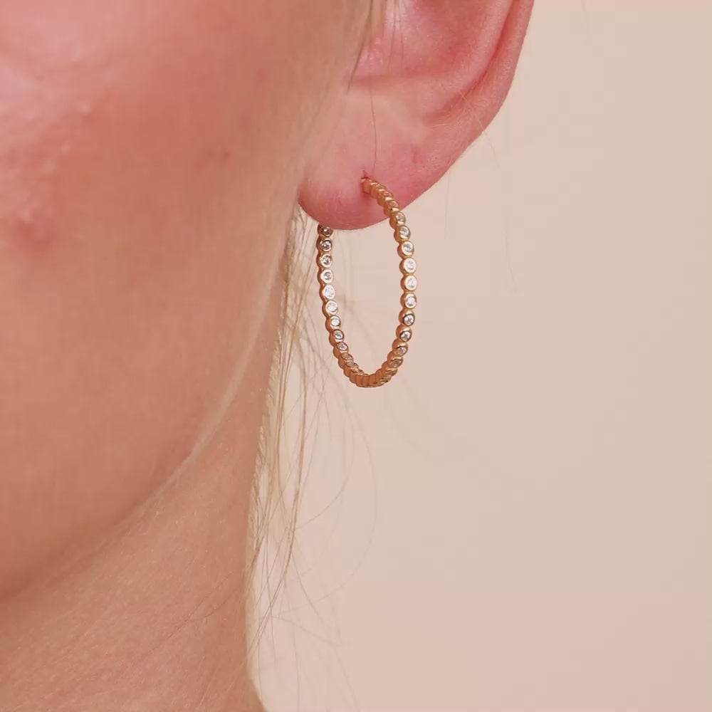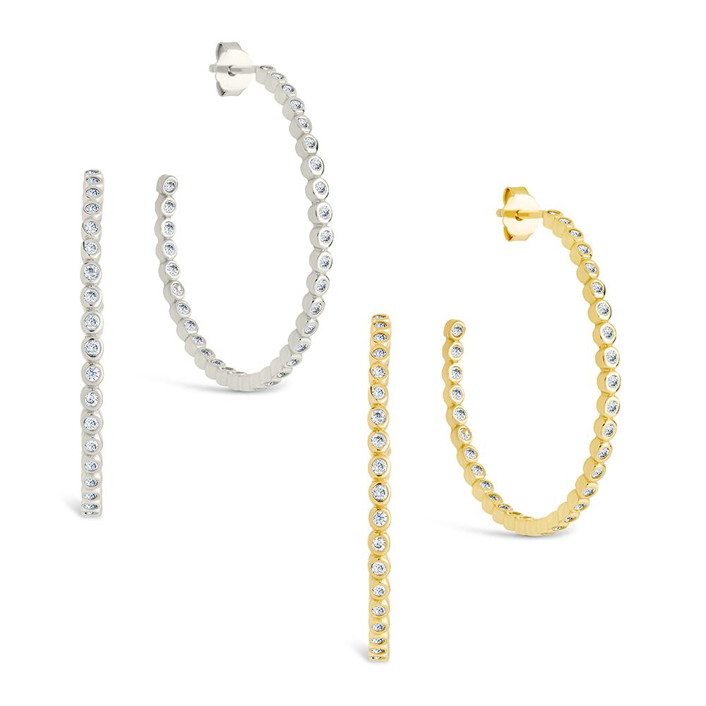 Simple shape. Soft detail. These hoops are made from slim sterling silver and finished with a series of round bezel-set hearts and arrows CZs. Lightweight. Intentional. Easy to keep on.