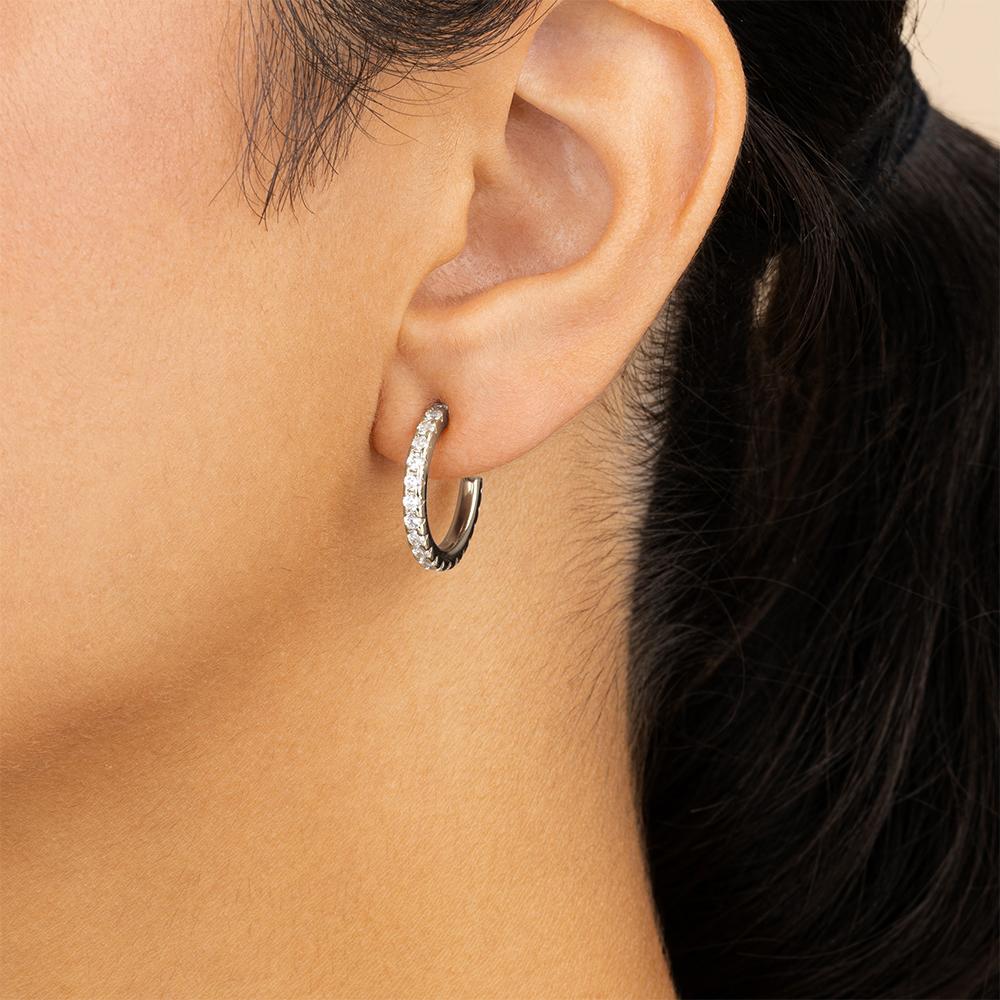 The Sterling Silver Bezel Statement Tube Hoops are the perfect mix of minimal and bold. These 0.5-inch hoops are set with Hearts & Arrows round CZs—subtle enough for everyday wear, but still make you look twice. A little hoop, a lot of impact.