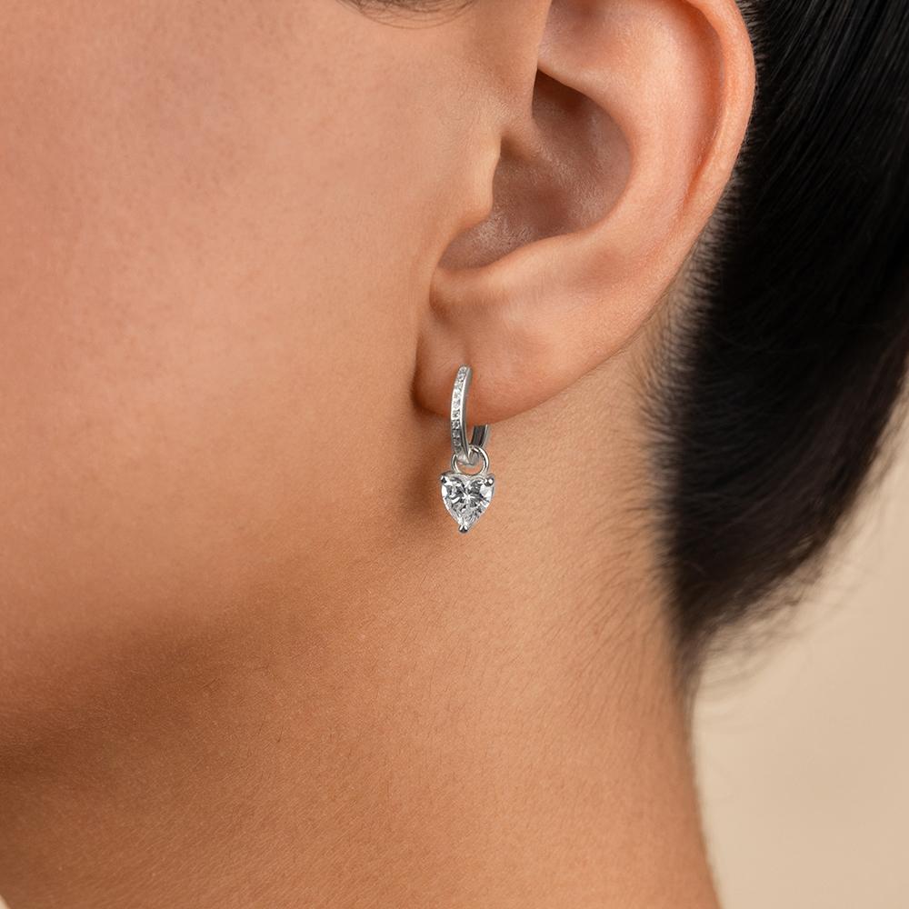 All love, no fuss. The Eugenia Micro Hoops are crafted in sterling silver and feature a suspended heart-cut Hearts & Arrows CZ.