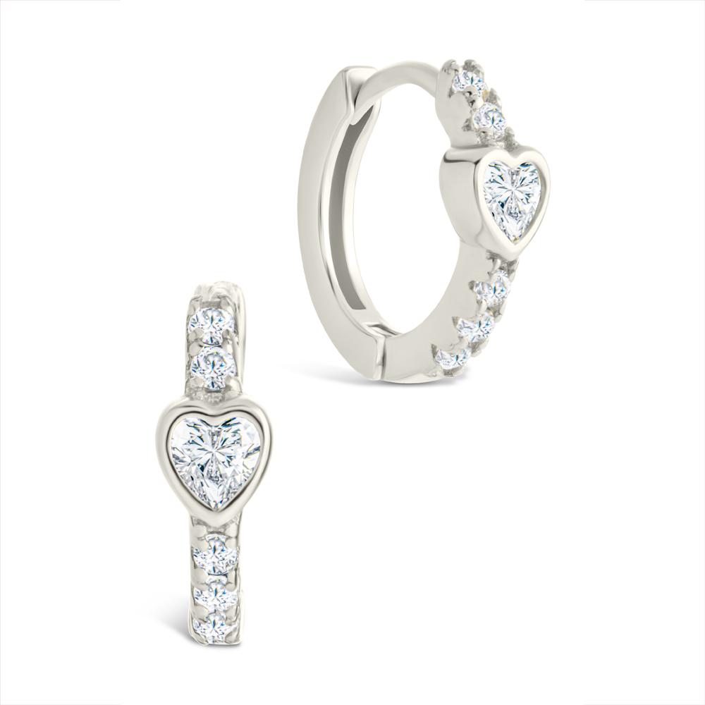 Sterling Silver Heart Cut Bezel Set Huggie Hoop Earrings