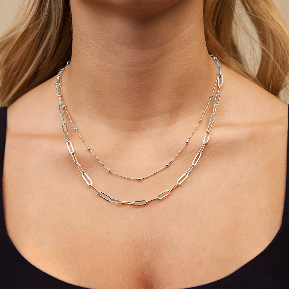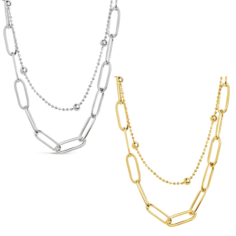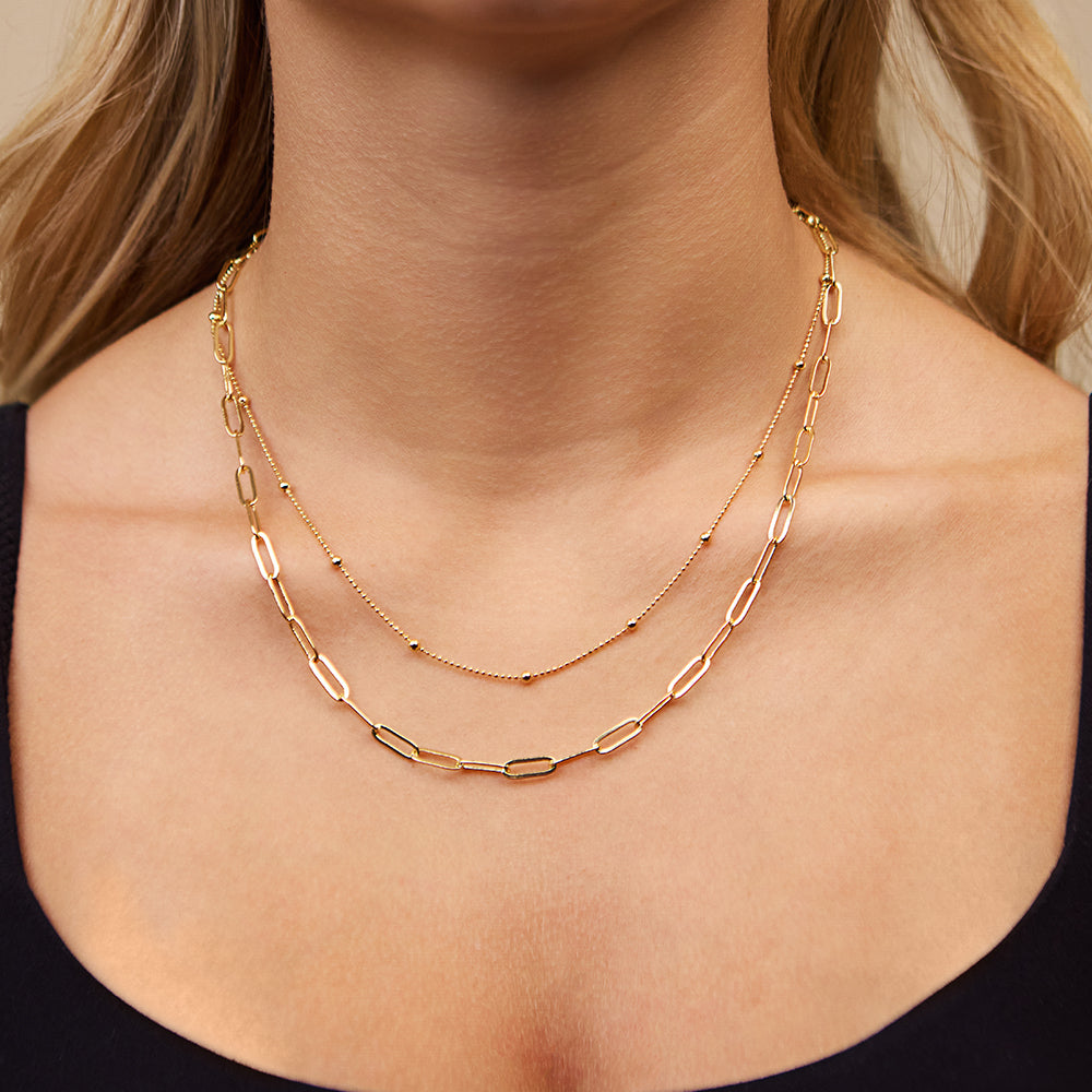 This Leah Layered Chain Necklace is a necklace with serious style! Featuring two layers of eye-catching chains, a beaded chain and a polished paperclip chain, you'll be the star of the show. Guaranteed to make a statement