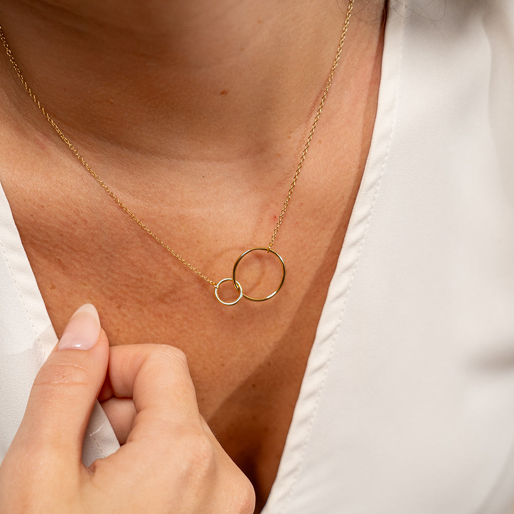 Delicate interlocking circles make this necklace a perfectly unique and elegant choice for a woman who wants to stand out. Choose from gold, silver, and rose gold tones -- or choose them all. Adjustable for a perfect fit!