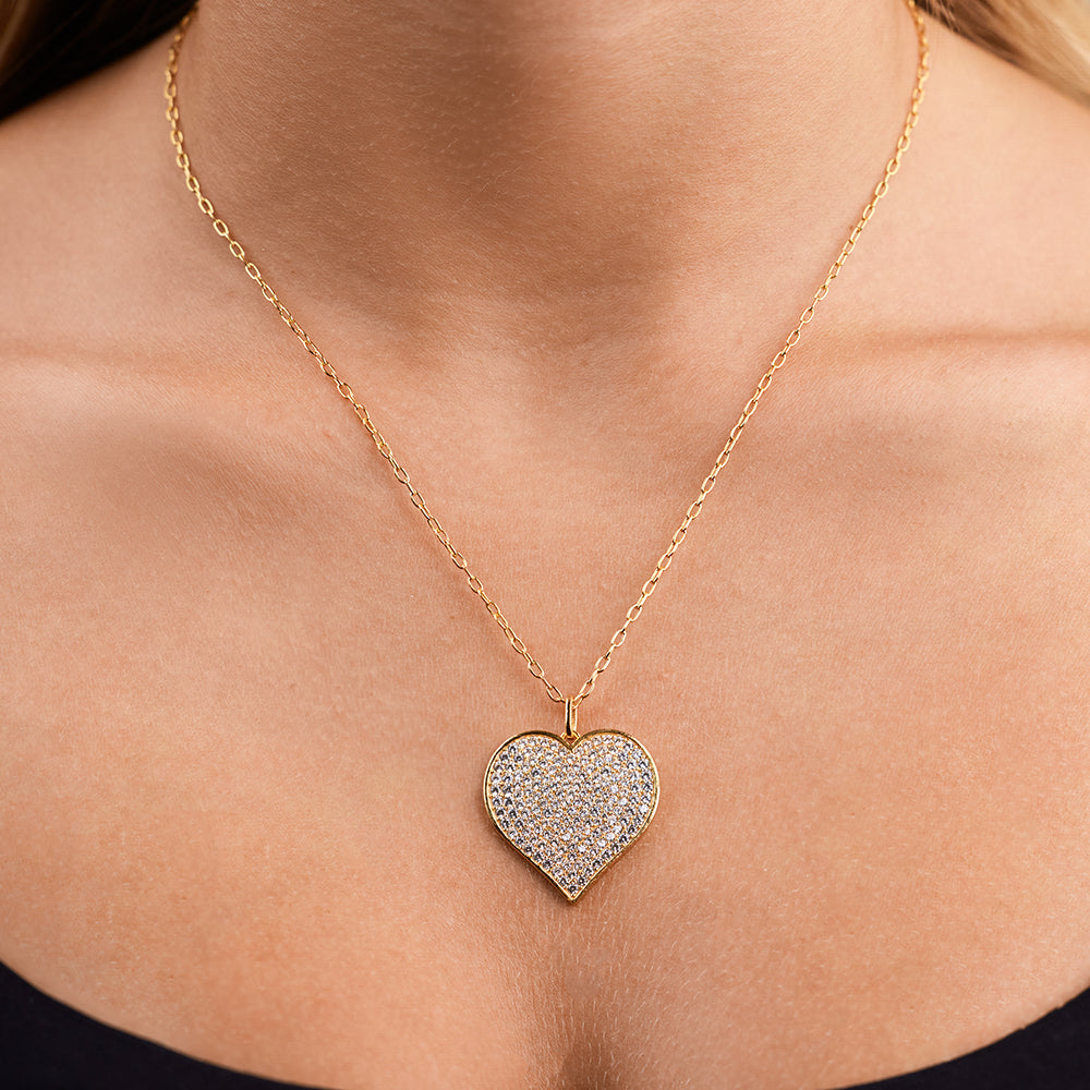 The Sterling Silver CZ Statement Heart Statement Pendant is all charm, no effort. Covered in tiny pave CZs and finished with a sleek bezel edge, it’s playful, a little bold, and ready to be your everyday favorite.
