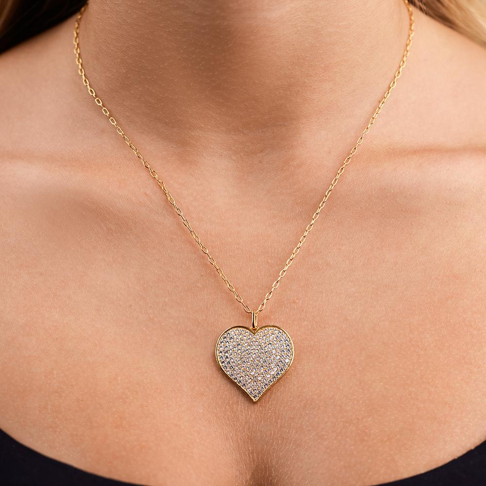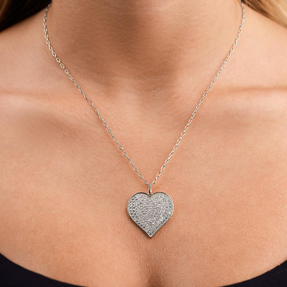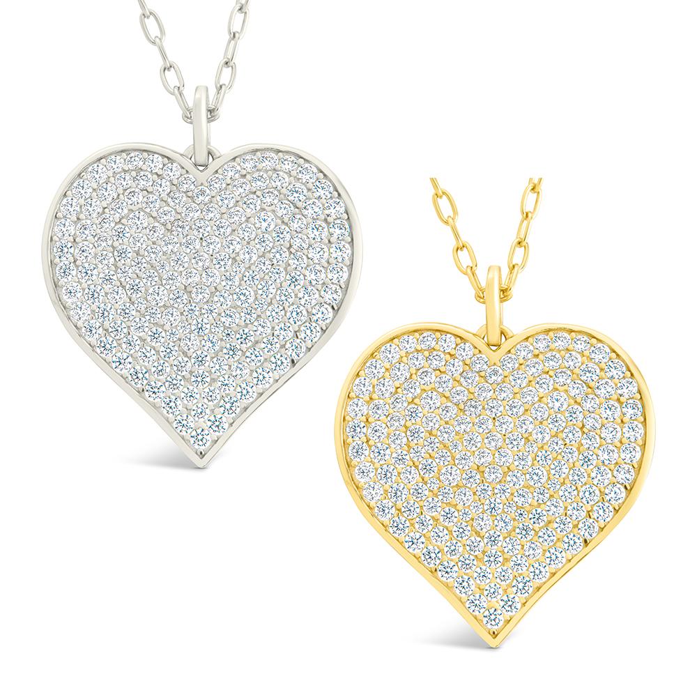 The Sterling Silver CZ Statement Heart Statement Pendant is all charm, no effort. Covered in tiny pave CZs and finished with a sleek bezel edge, it’s playful, a little bold, and ready to be your everyday favorite