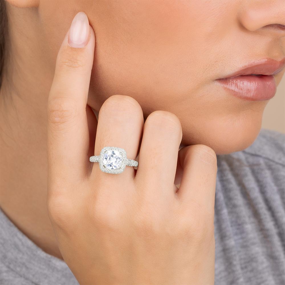 All eyes on this one. With a cushion-cut center and pavé halo, it brings drama in the best way. Classic, luxe, and made to shine.