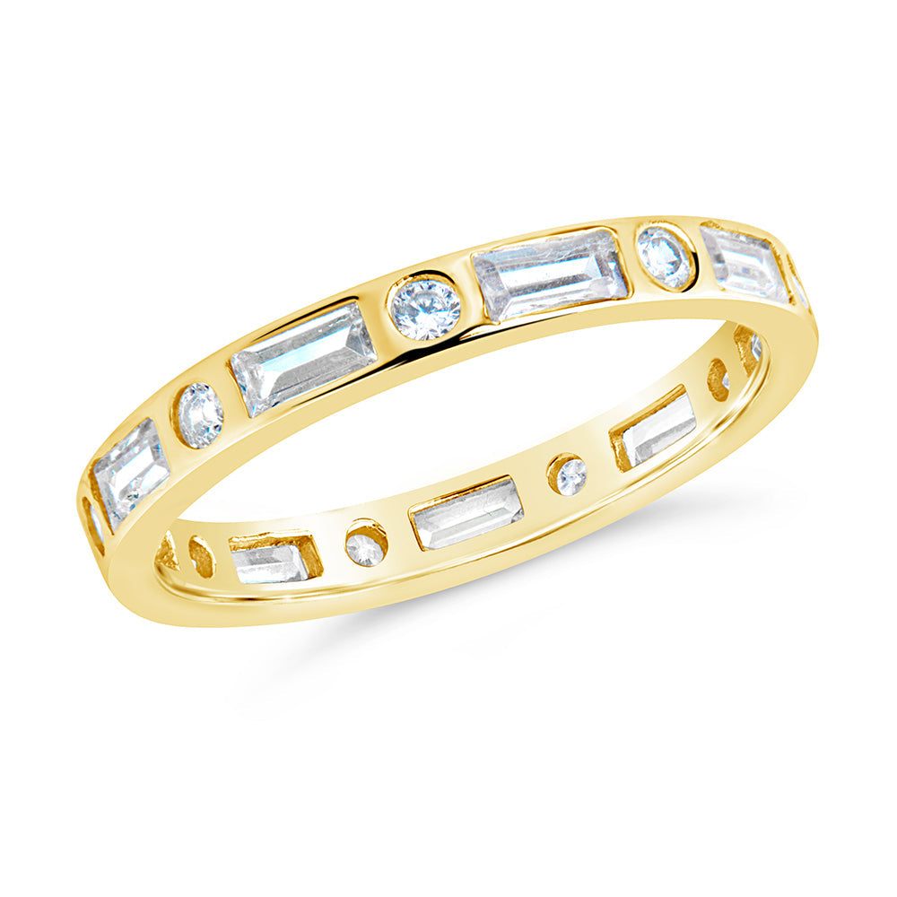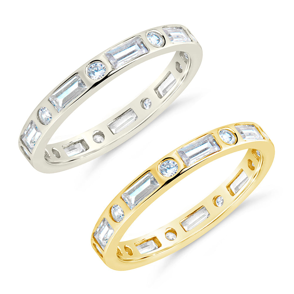Exude elegance with this timeless Sterling Silver Ethel CZ Ring. Featuring glimmering CZ stones in a classic band design, this is an accessory perfect for any occasion.