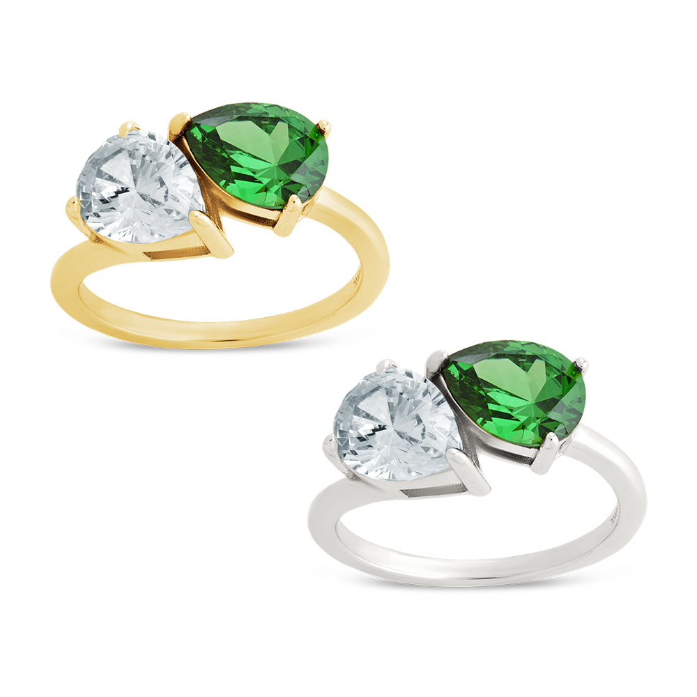 - 7 mm x 9 mm Pear Cut Clear CZ & Pear Cut Emerald Green CZ