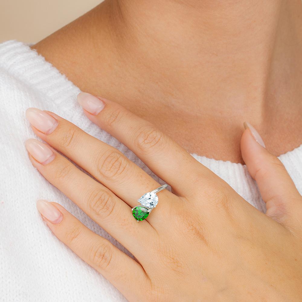 Sterling Silver Pear Toi et Moi Ring