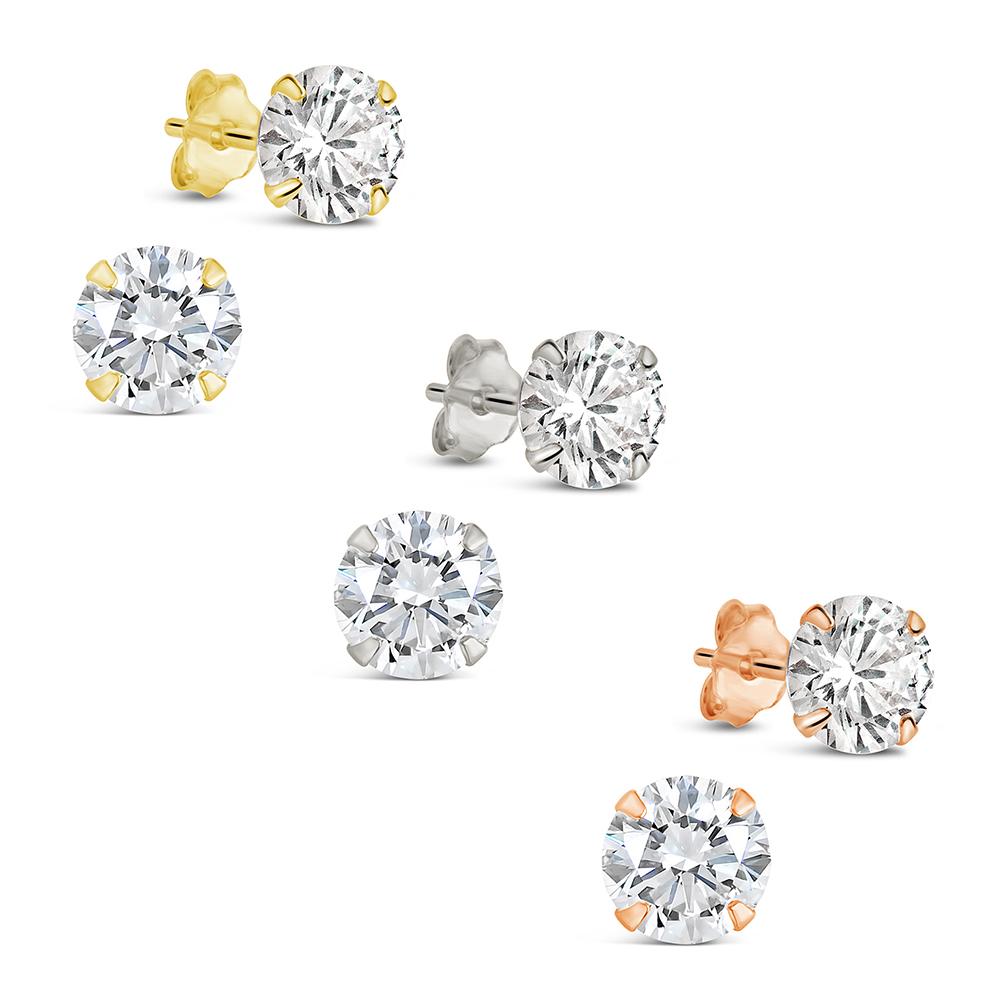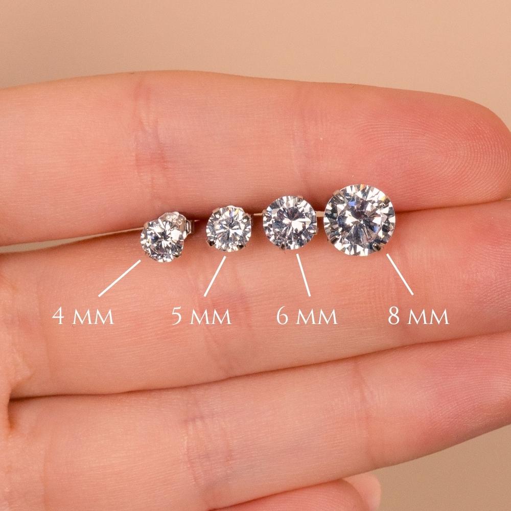 Hearts and arrows cut for brilliance that rivals the real thing. These CZ studs catch the light from every angle—clean, classic, and easy to wear every day. Available in gold or silver tones, in sizes from barely-there (4 mm) to bold (8 mm).