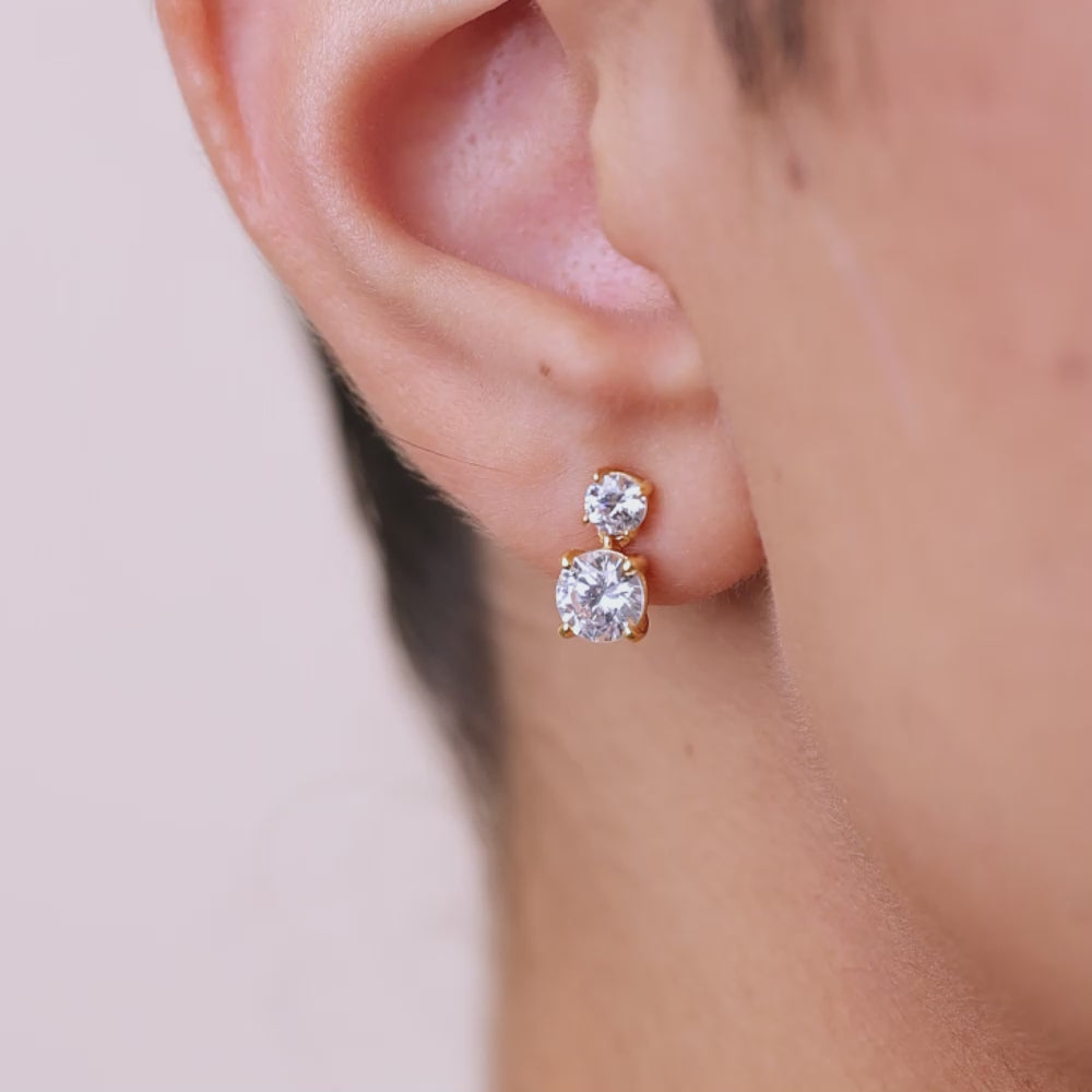 The Galatea Brilliant Cut CZ Studs feature round Hearts & Arrows CZ stones in a clean, drop-stud setting. Precision and balance come together for a design that’s both understated and bold.