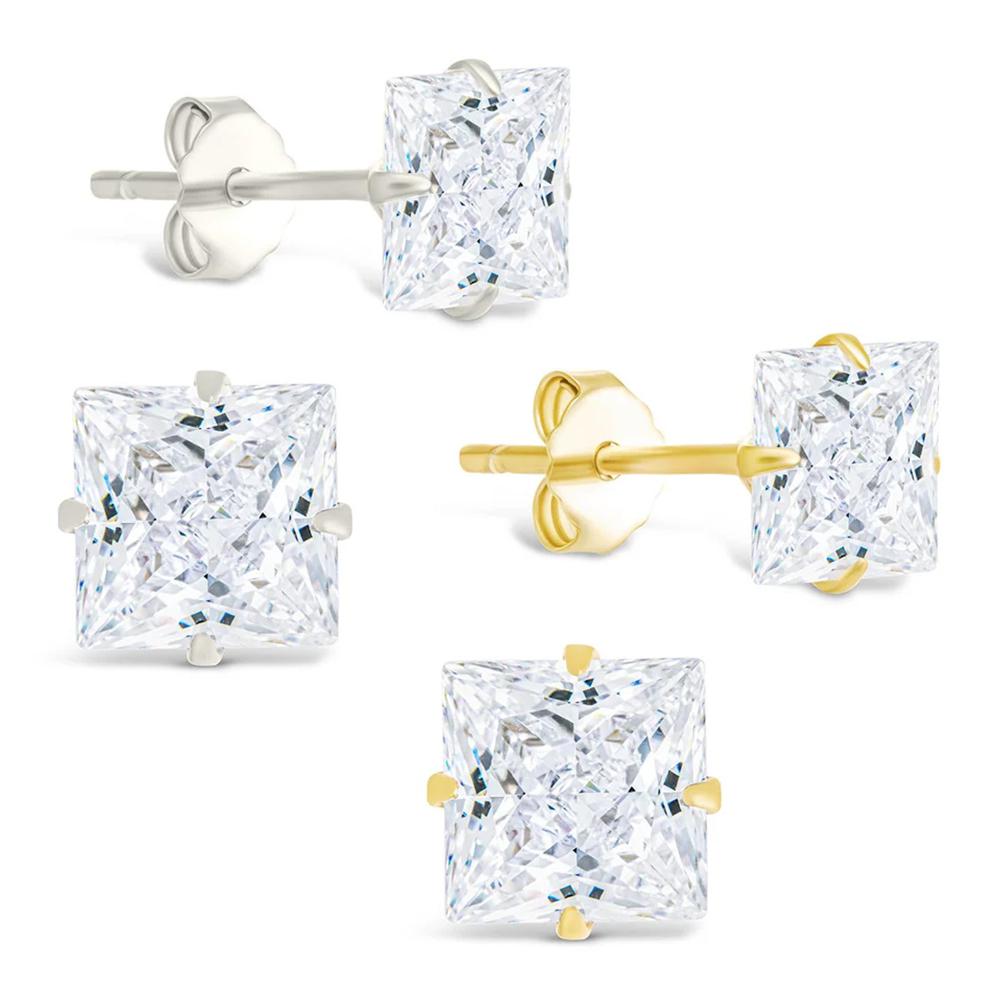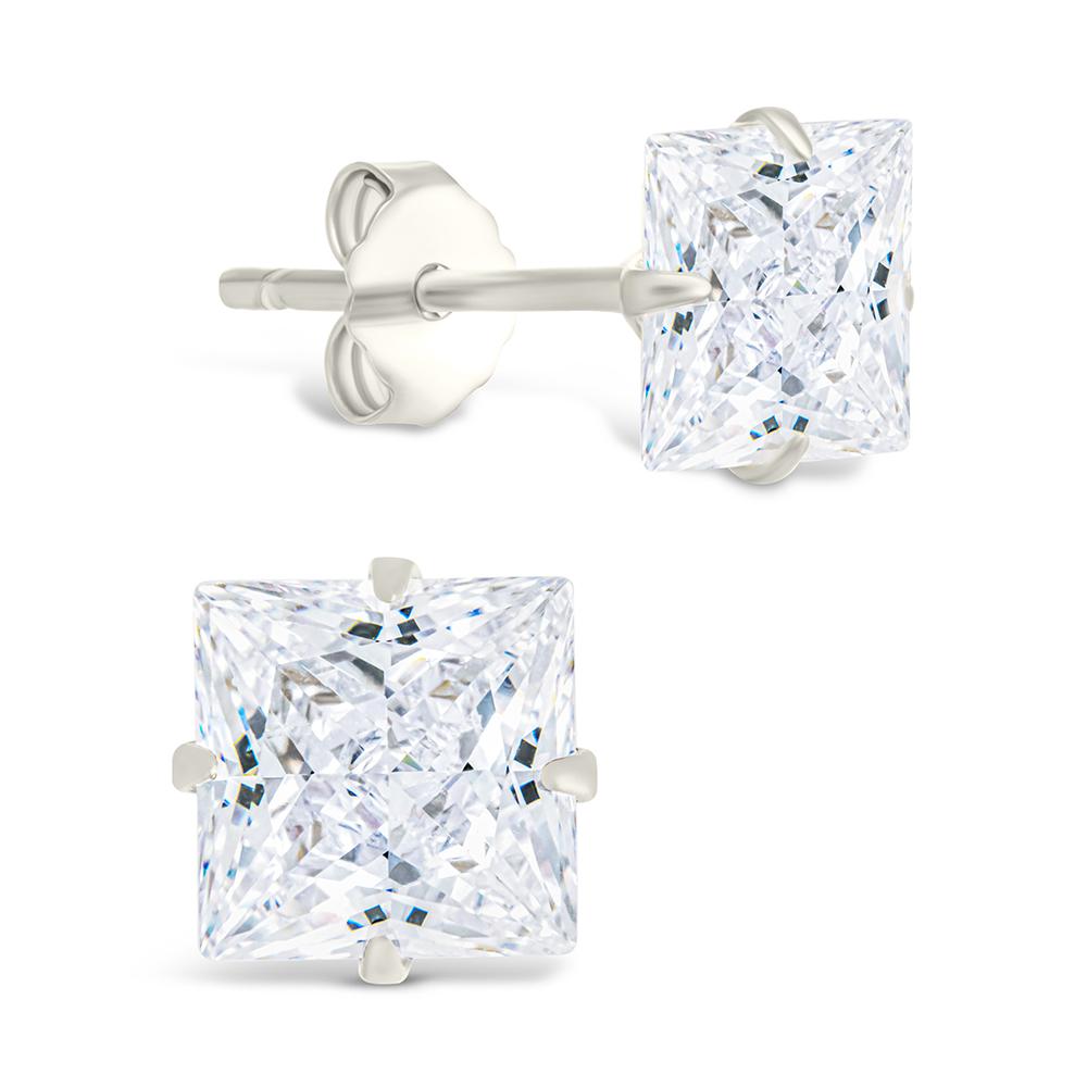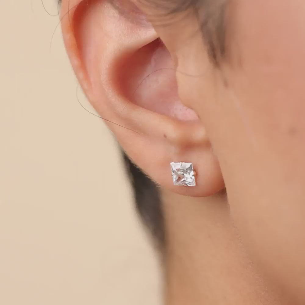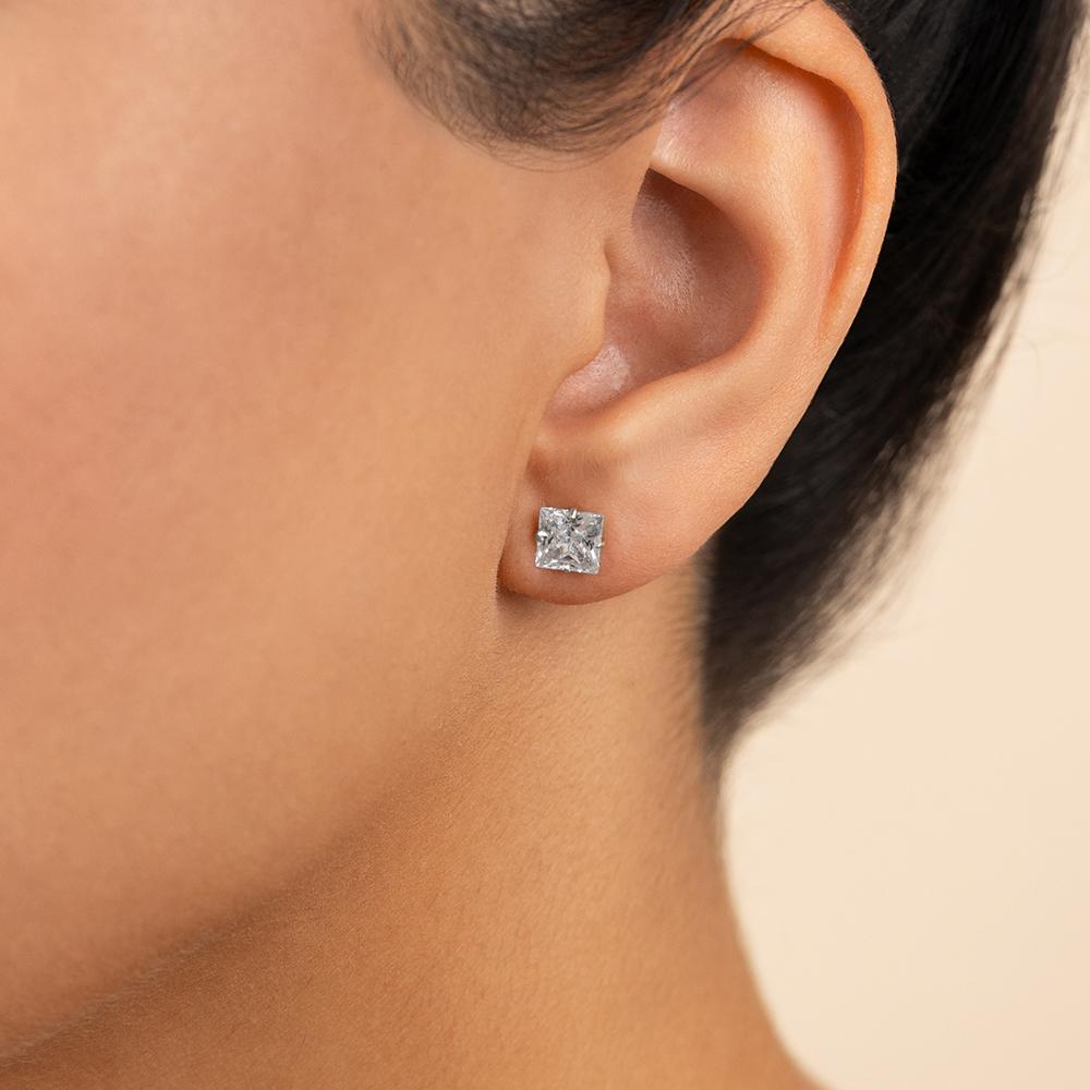 Simplicity with a bold twist. These studs feature Hearts & Arrows Princess cut stones for insane brilliance, they catch the light from every angle. Wrapped in a sleek, bezel setting and set in non-tarnishing sterling silver, they’re the perfect mix of classic and modern.