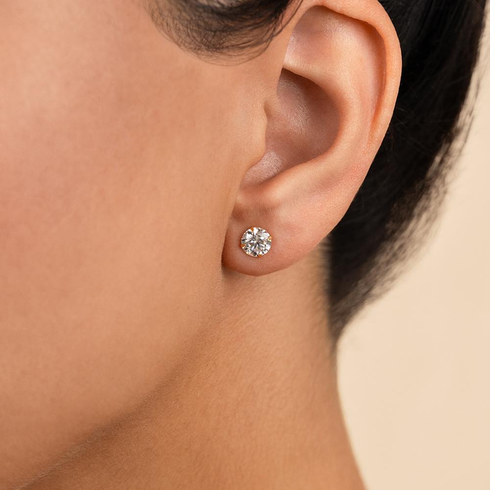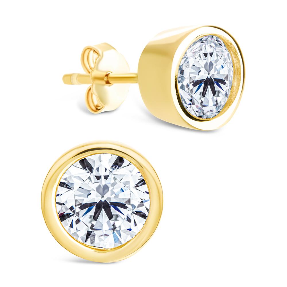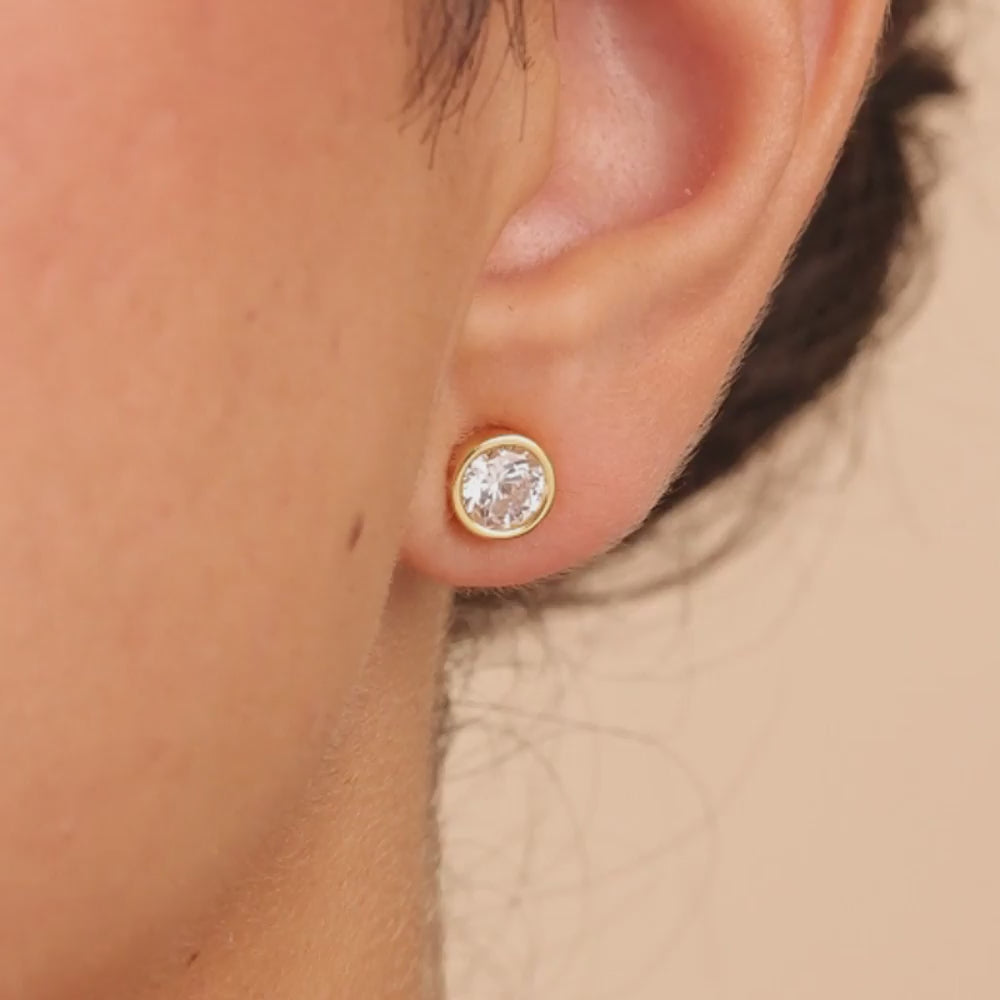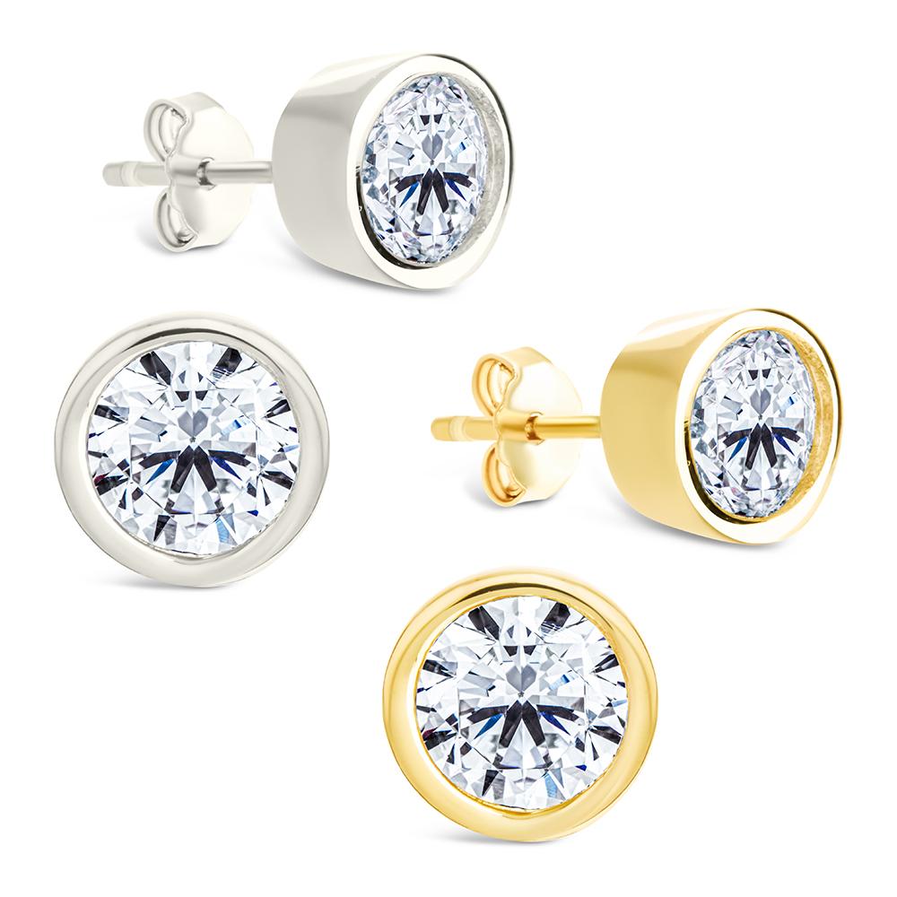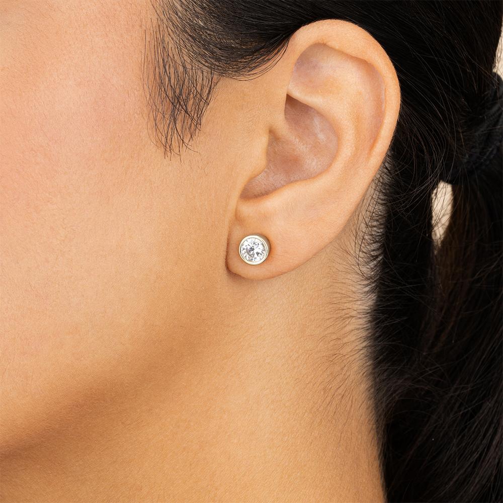 Simplicity with a bold twist. These studs feature Hearts & Arrows Round cut stones for insane brilliance, they catch the light from every angle. Wrapped in a sleek, bezel setting and set in non-tarnishing sterling silver, they’re the perfect mix of classic and modern.