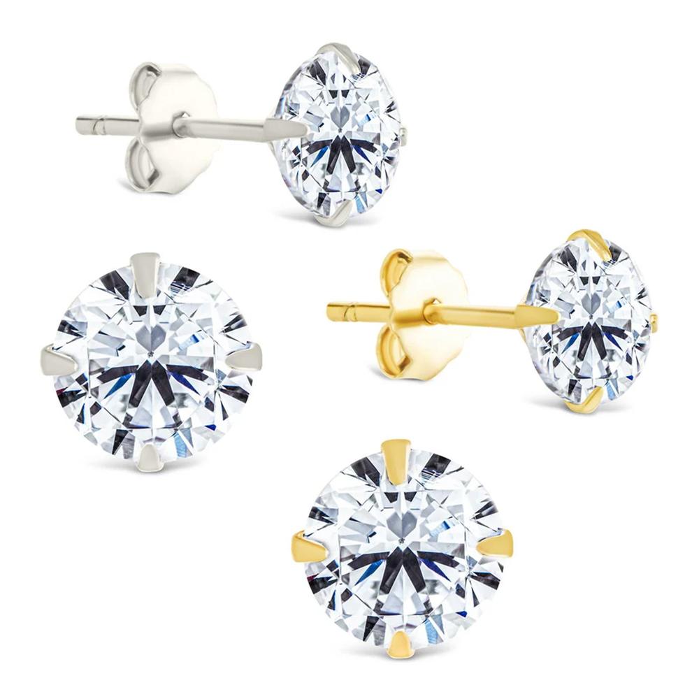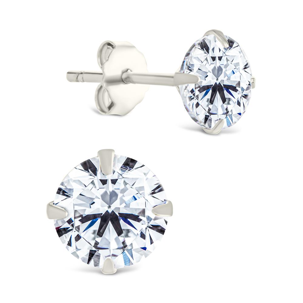 Sterling Silver Round Cut Stud Earrings